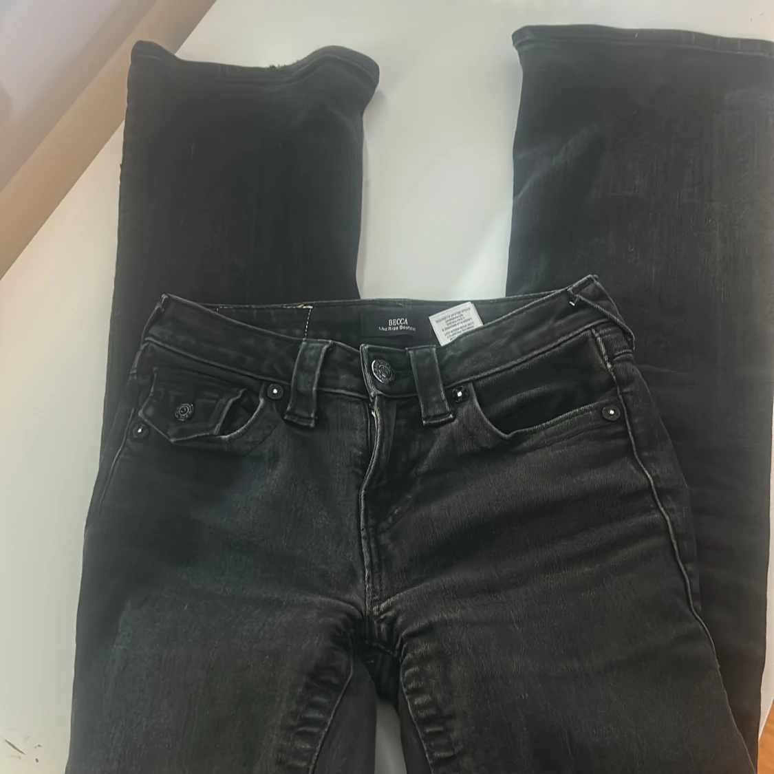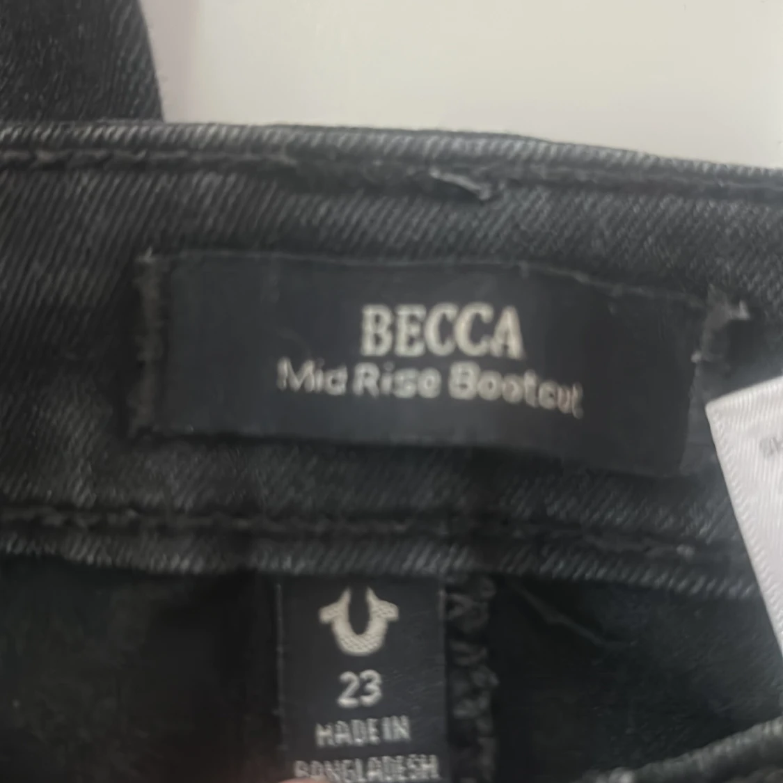 Svarta jeans från True Religion, modell Becca Mid Rise Bootcut. Snygga detaljer med markerade sömmar och ficklock bak med knappar. Klassisk bootcut-passform och cool tvättad look. Perfekta för dig som gillar street och premiumkänsla.