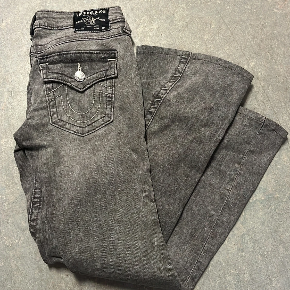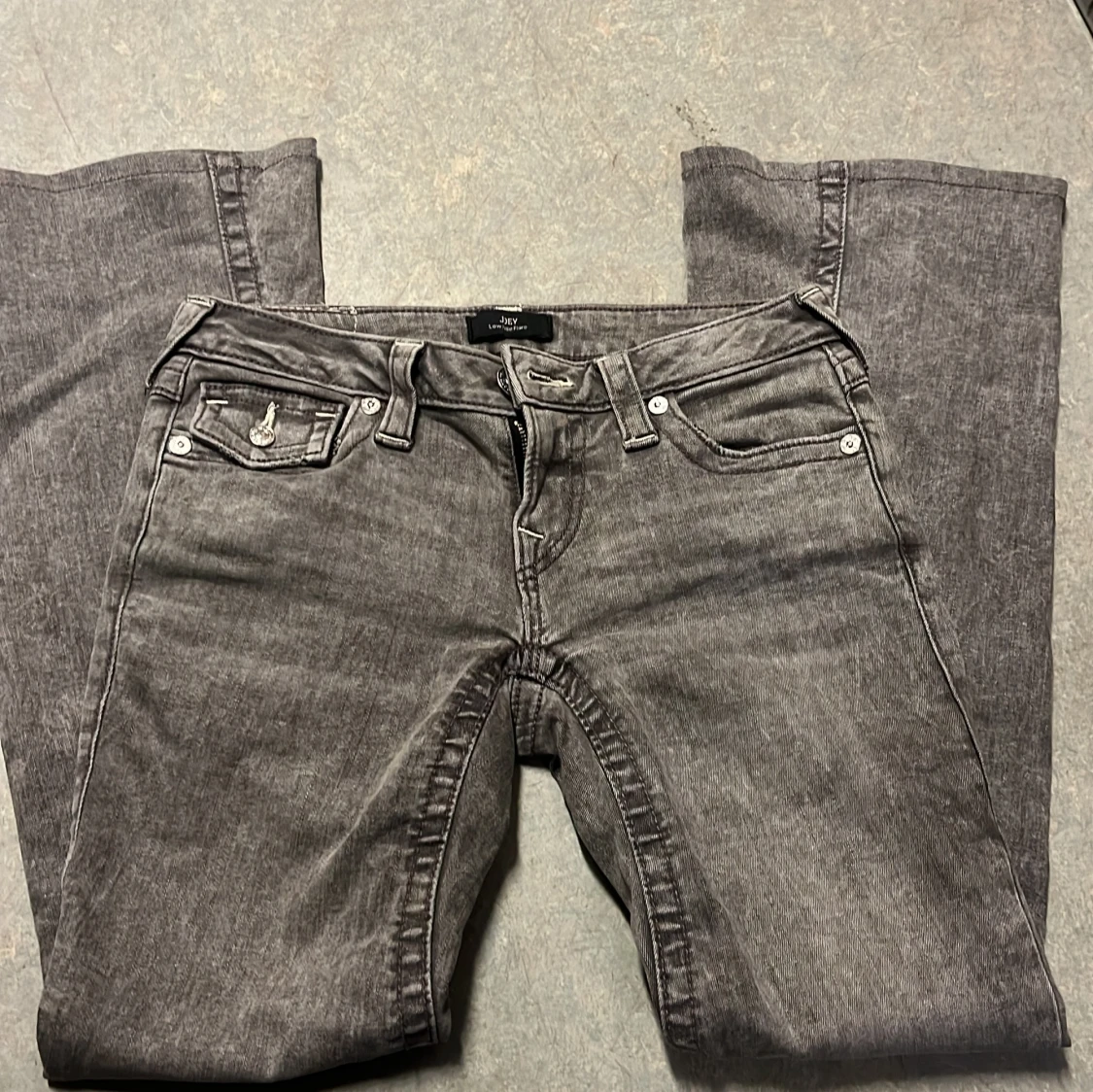 True religion jeans, modell Joey. Storlek 26 längd uppsydda att passa 162 cm. bootcut passform och coola fickdetaljer bak. Låg midja.