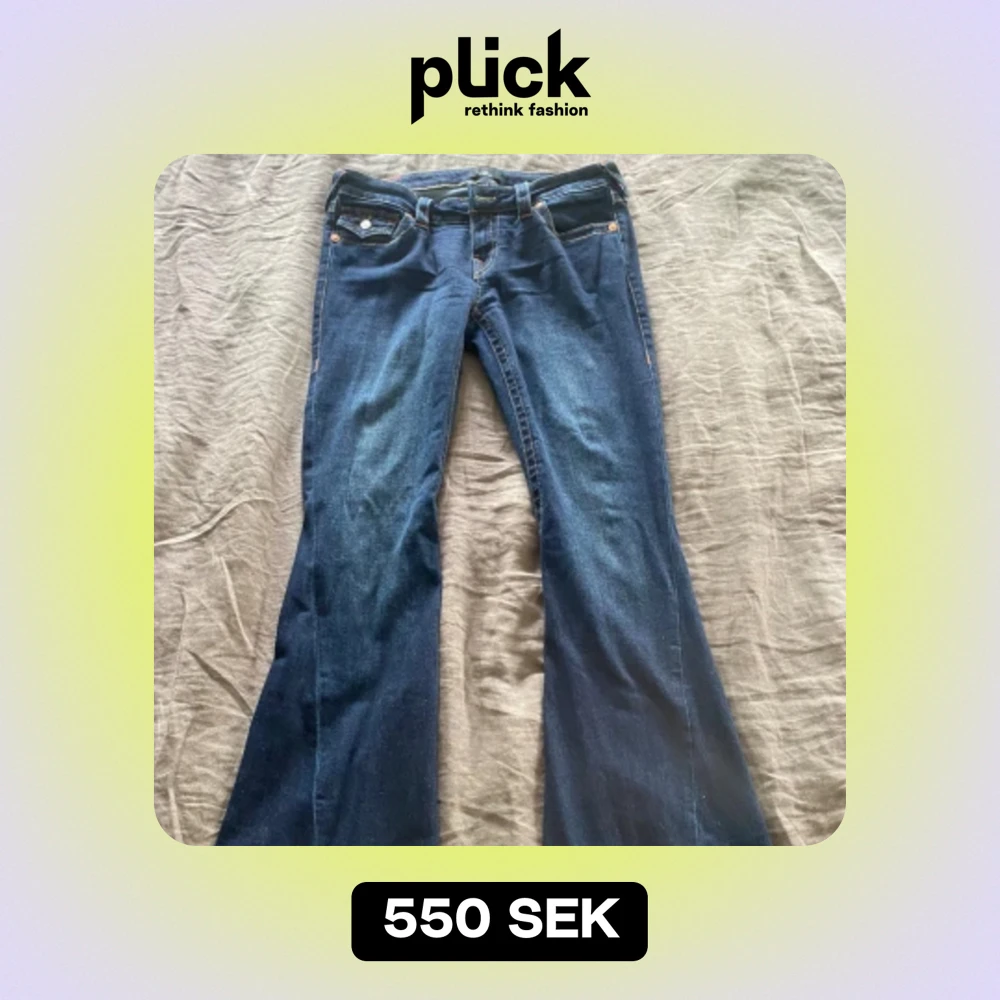 Säljer dessa supersöta low rise true religion jeans som tyvärr inte kommer till användning längre. Plagget har inga defekter och är i mycket gott skick förekommer dock lite damm på plagget men ska tvättas). Jeansen motsvarar ca strl S =28W 32 längd