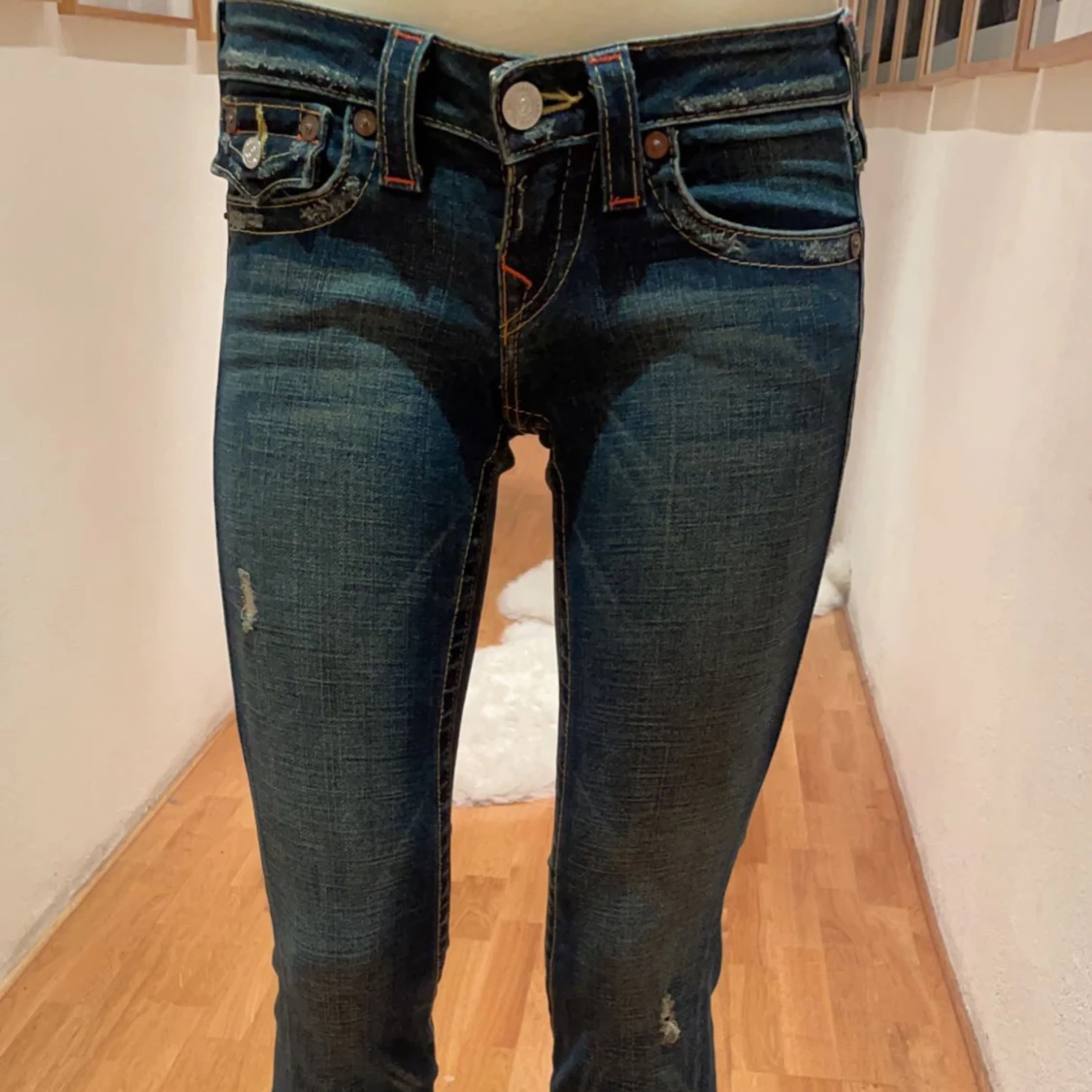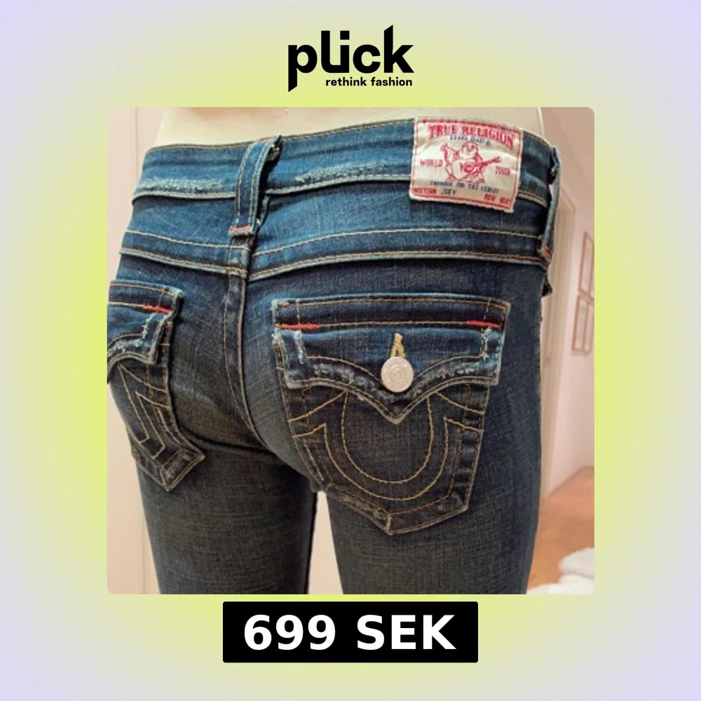 Bootcut jeans från True Religion. Unika fickor med snygga färger och mönster. Fint skick. Mått Innerbenslängd: 72cm. Midjemått rakt över: 32 cm. Skriv gärna vid frågor eller prisförslag💗