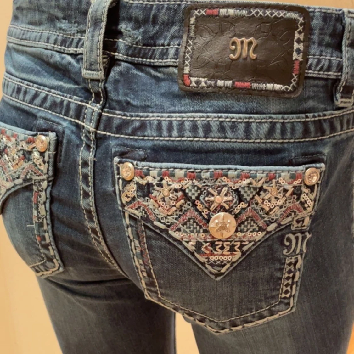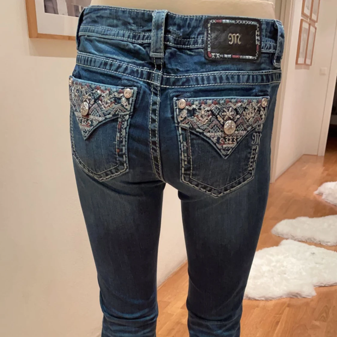 Lågmidjade bootcut jeans från Miss me. Unika fickor med snygga färger och mönster. Skriv gärna vid frågor eller prisförslag💗