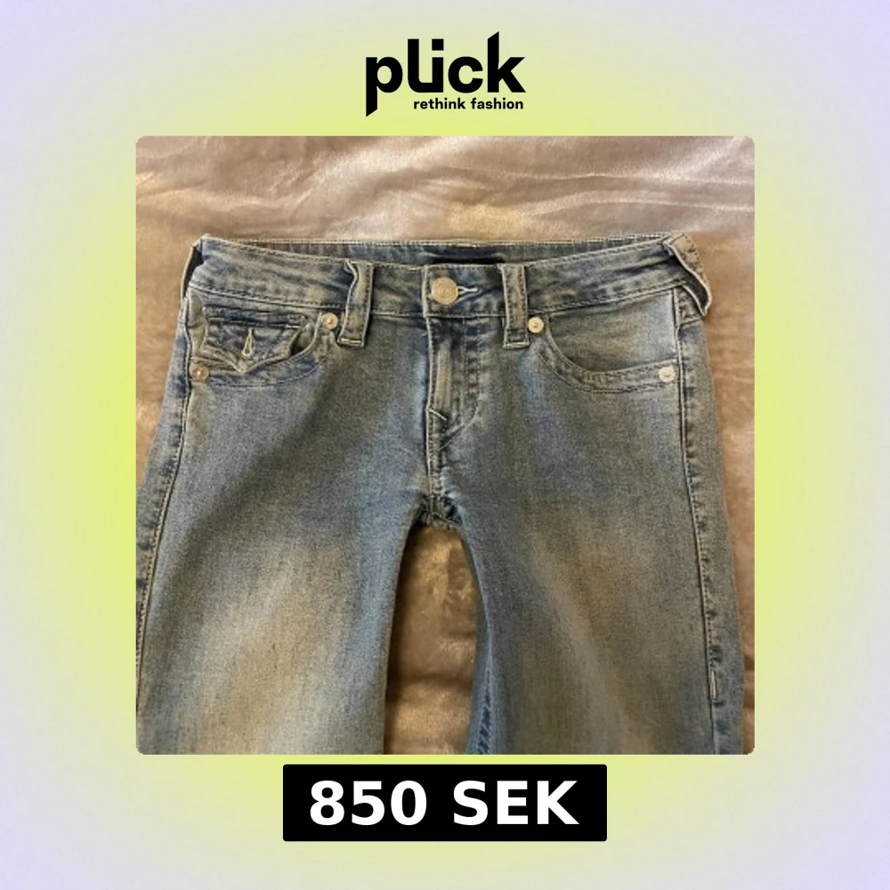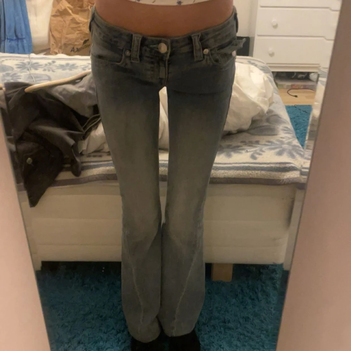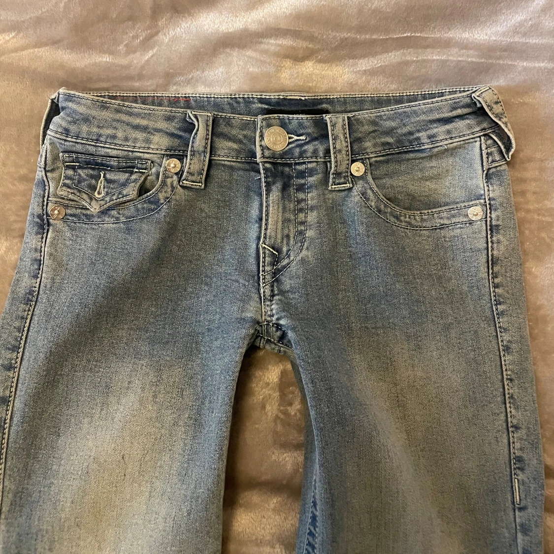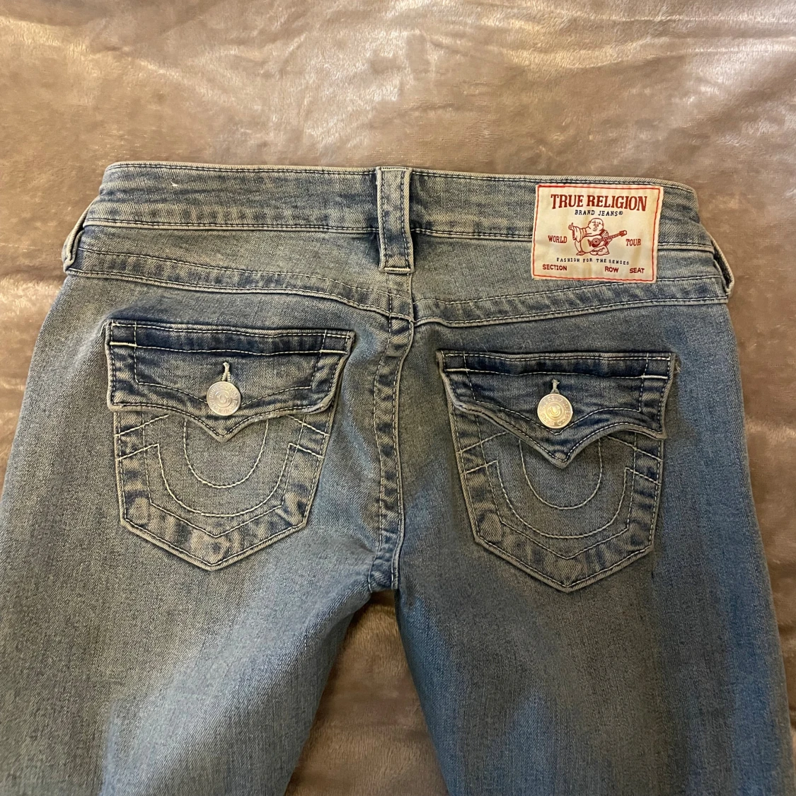 Lågmidjade bootcut jeans från true religion i storlek w24, dom är uppsydda och är i bra skick.