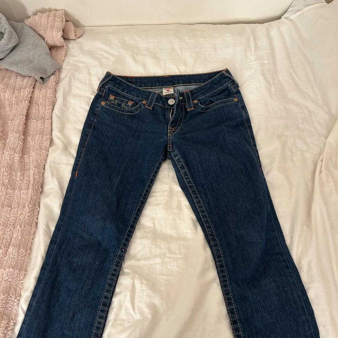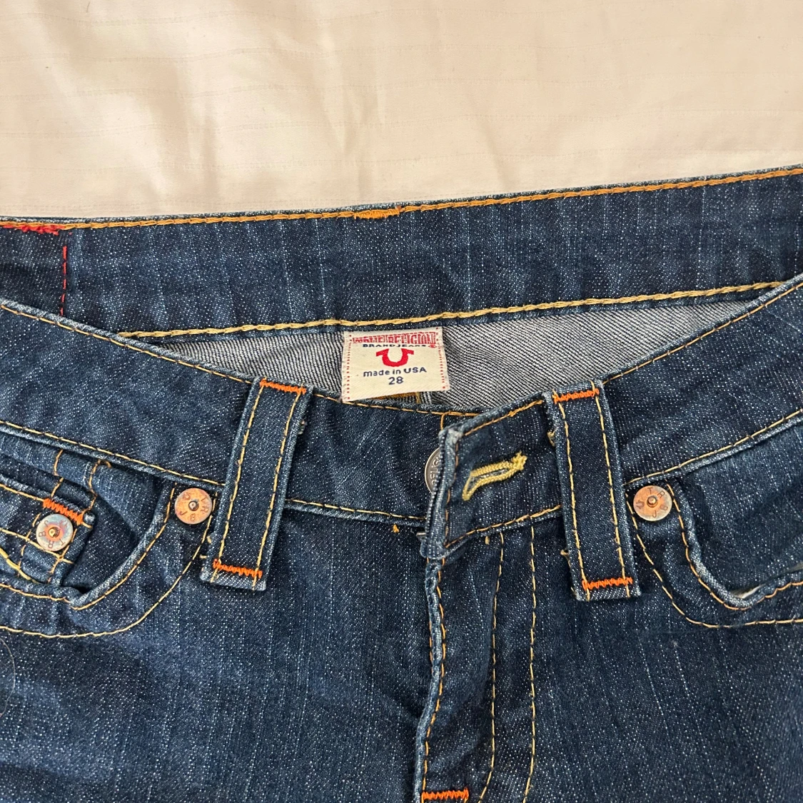 Ett par fina true religions som inte kommer till användning. Tråden sitter löst på ena fickan