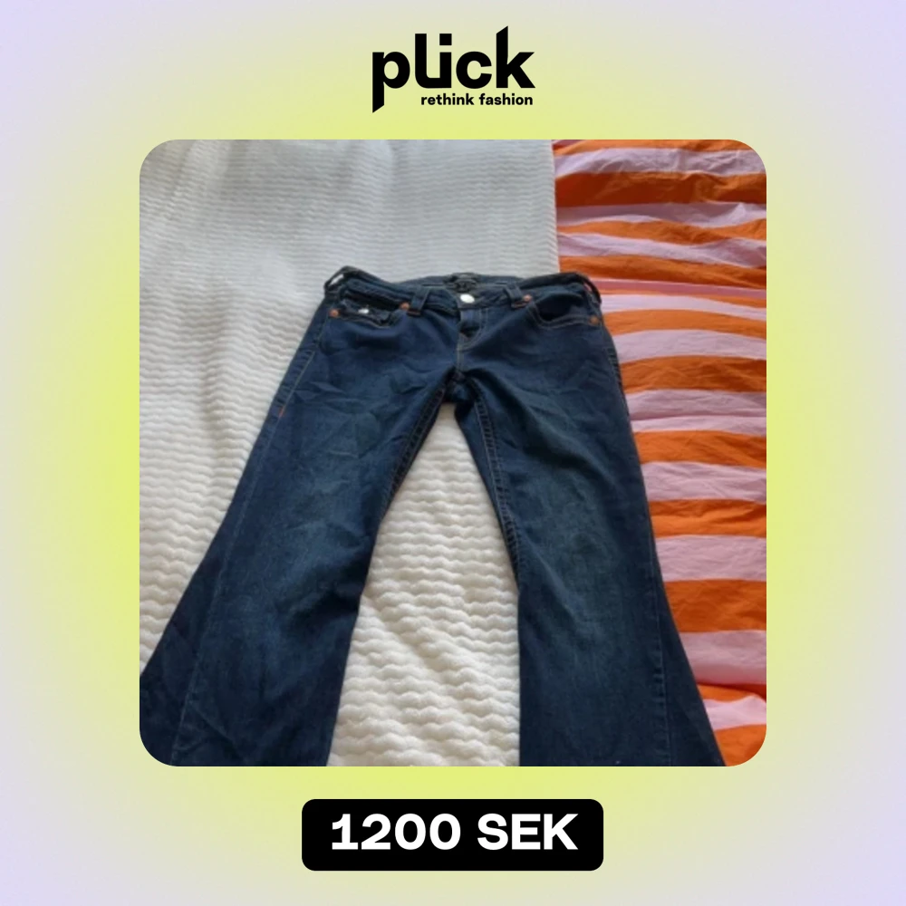 Jätte fina true religion Jeans i ny skick Köpta i april men aldrig använda pga att dem var förstora, dem ör uppsydda för att passa en som är 160cm,