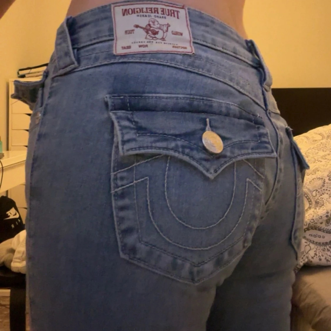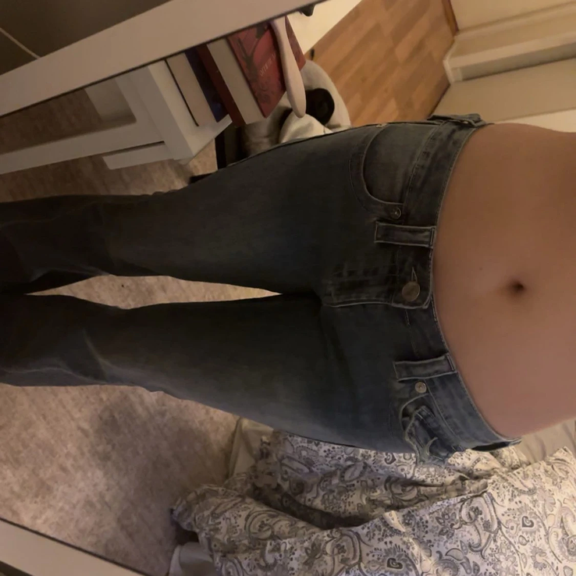 Snygga blå bootcut jeans med hög midja och klassisk femficksdesign. Jeansen har en knapp och dragkedja framtill samt dekorativa sömmar på bakfickorna. Perfekta för en avslappnad stil. Är i modell joey i storlek 27, säljer för köpte fel storlek