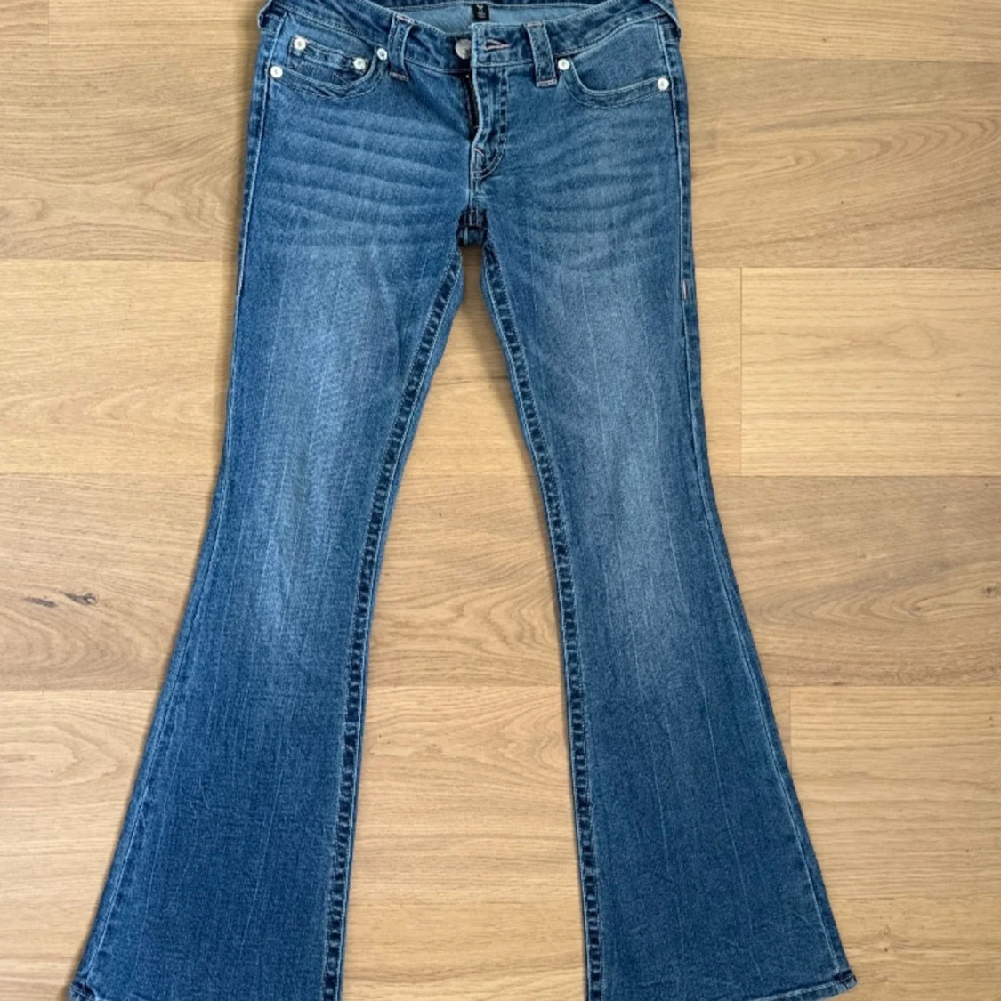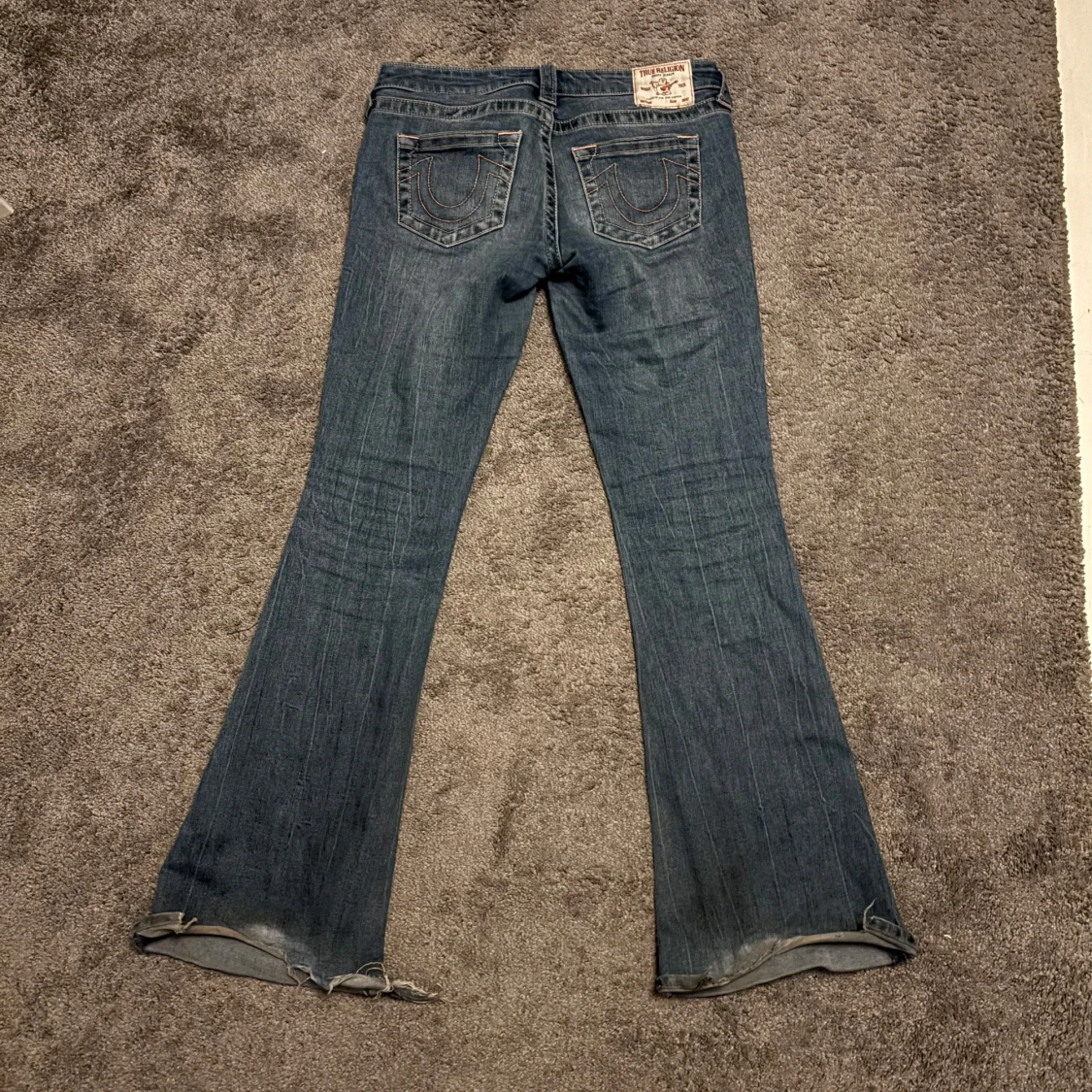 Säljer ett par jättesnygga jeans från True Religion som är från Nelly, dom är använda ganska mycket men kommer inte så mycket till användning längre, det är i storlek 27 vet inte direkt va det är för storlek om de är S eller M, dom har rosa detaljer, skriv för mer bilder eller om ni har frågor och pris går att diskutera☺️