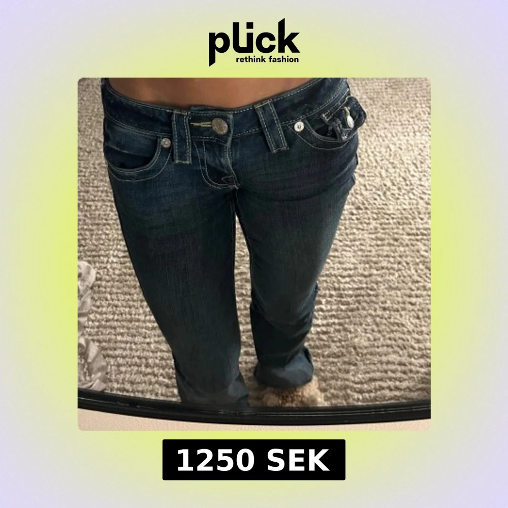 Säljer ett par mörkblå True Religion Joey jeans med låg midja och flare-ben. De är typ inte använda alls, så inga defekter eller liknande. Säljer då de inte är min stil.💐🩷