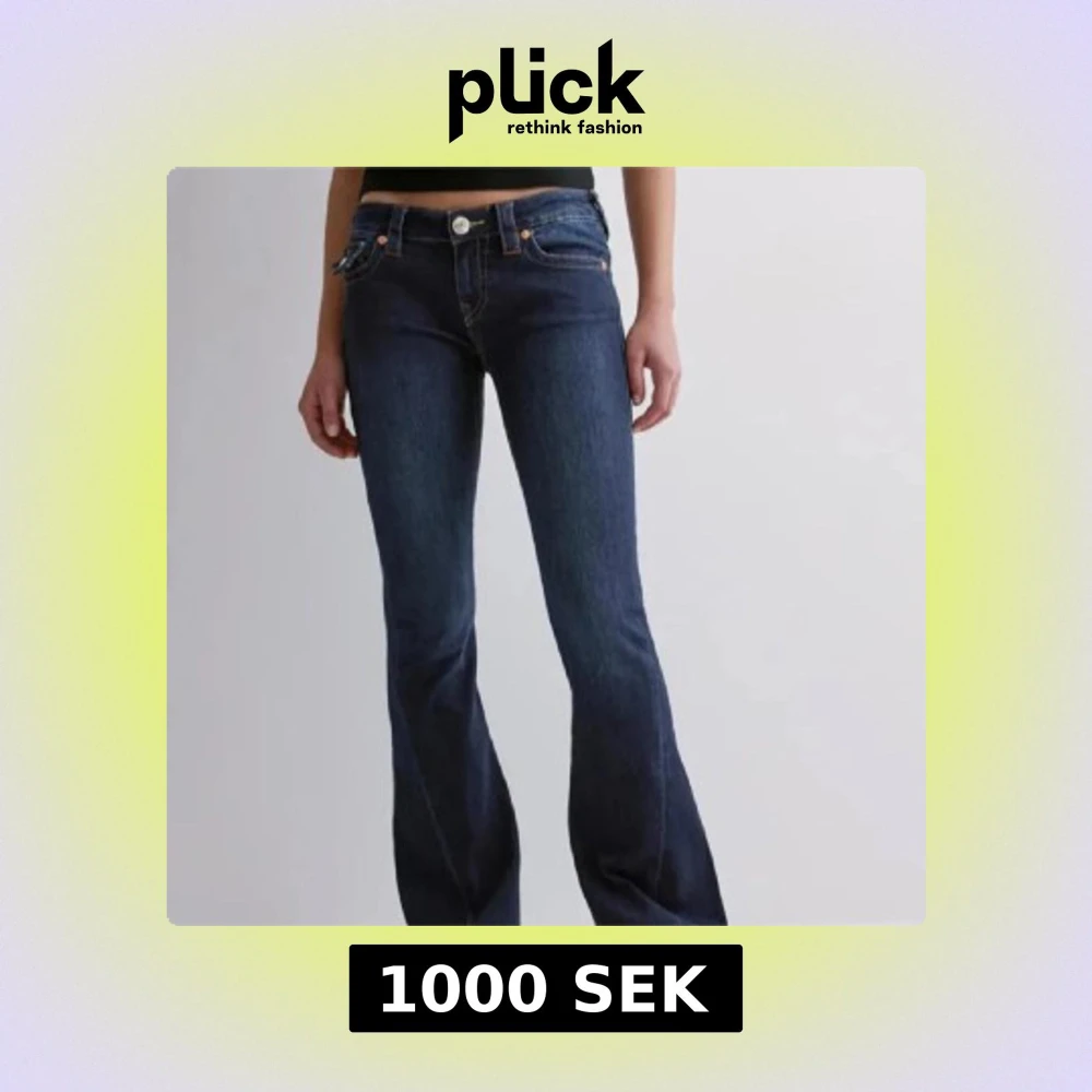 Snygga mörkblå jeans från True Religion, modell Joey med låg midja och bootcut. Knappt använt dem för dom inte riktigt är min stil.