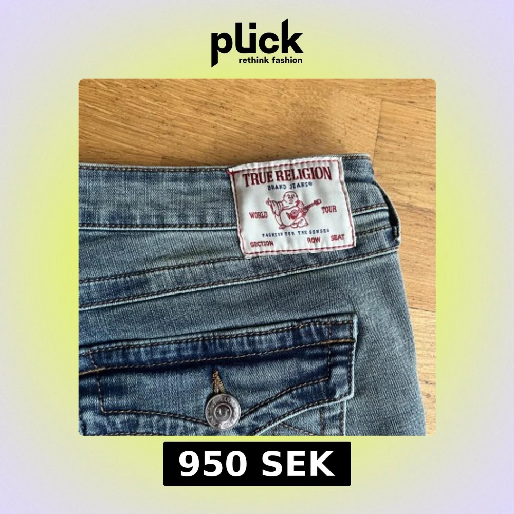 Snygga ljusblå jeans från True Religion, modell Joey med låg midja och utsvängda ben. Klassiska detaljer med synliga sömmar, fickor med lock och logoknappar. Helt ny oanvänd.