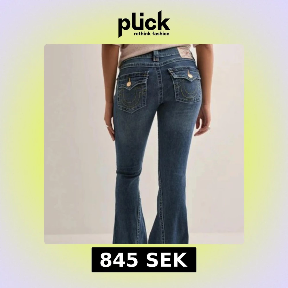 Snygga blå jeans från True Religion med bootcut passform och klassiska kontrastsömmar. Jeansen har guldiga knappar på bakfickorna och tydliga broderade detaljer. Tillverkade i stretchig denim för en bekväm känsla och cool look.