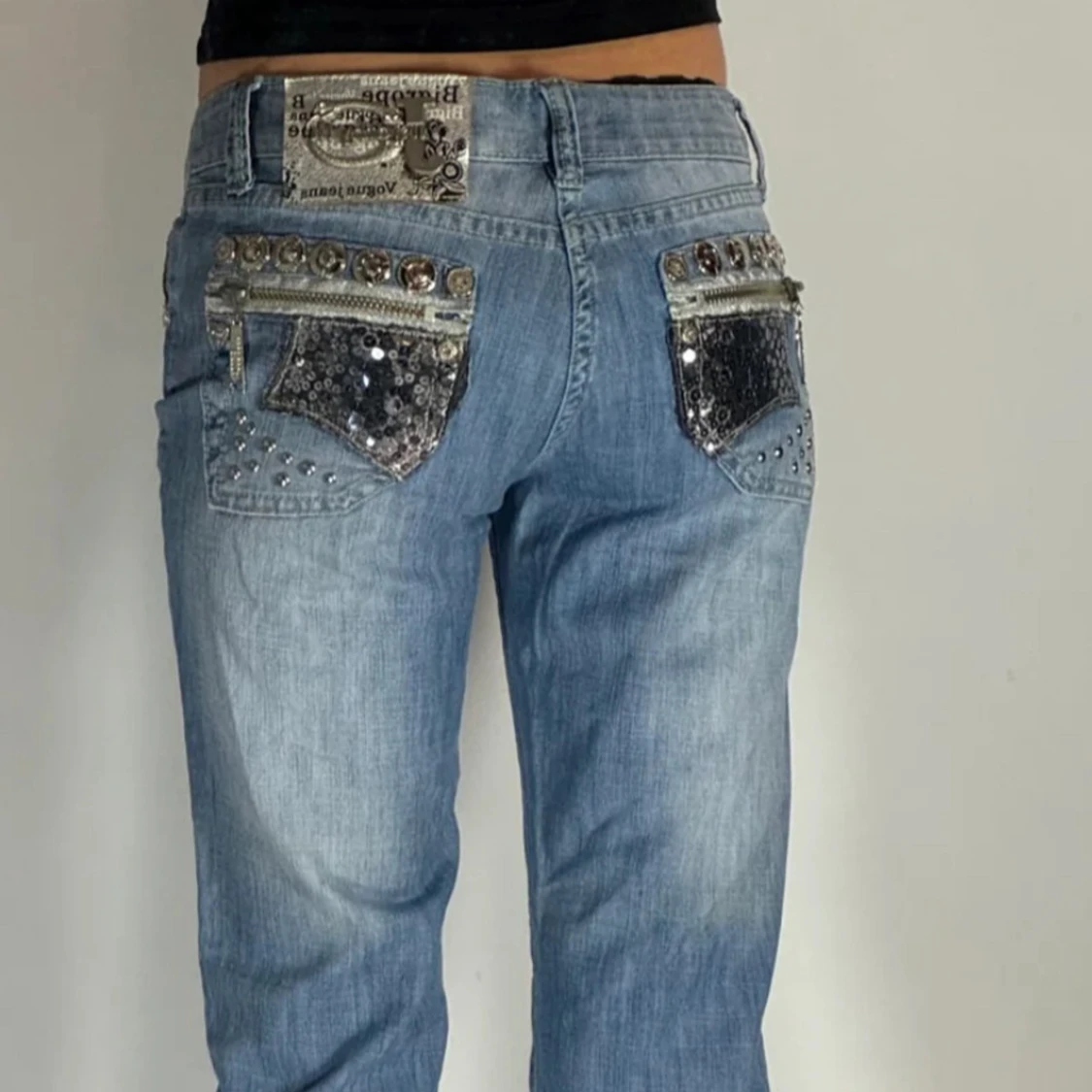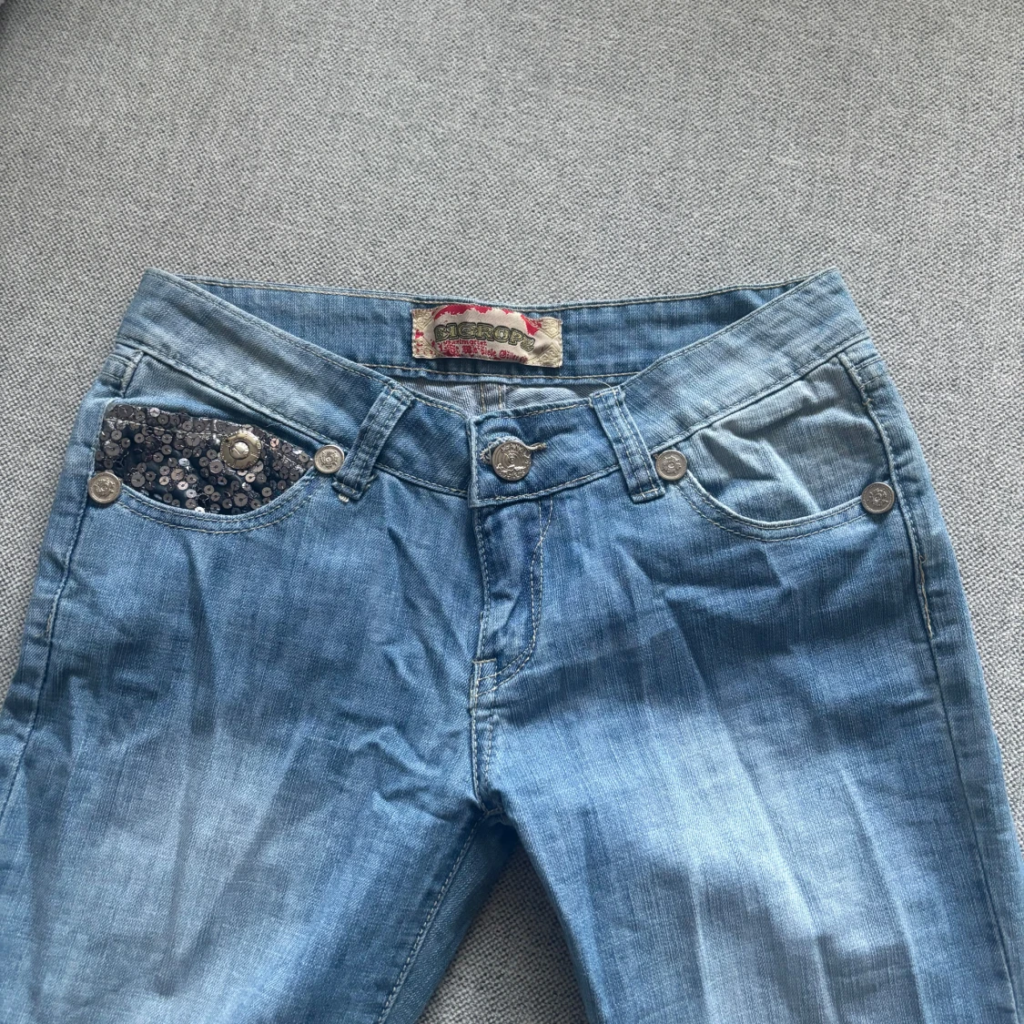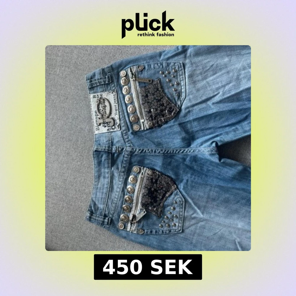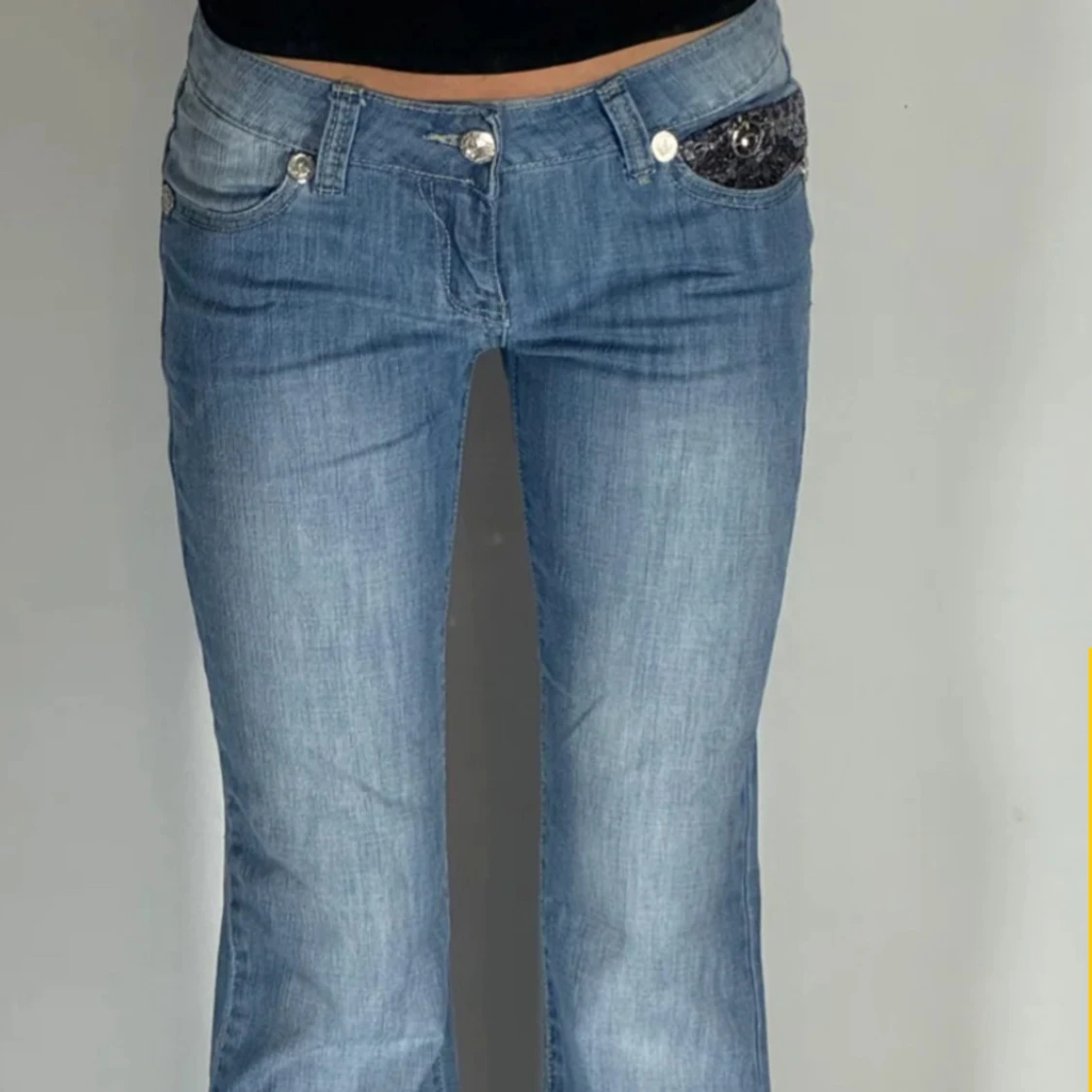 SUPERSNYGGA blåa jeans från BigRope med fina detaljer på bakfickorna, köpte för 600😍Säljer då de tyvärr inte passar mig💕Priset går att diskutera, skriv för frågor, EJ RETURER🥰🤩