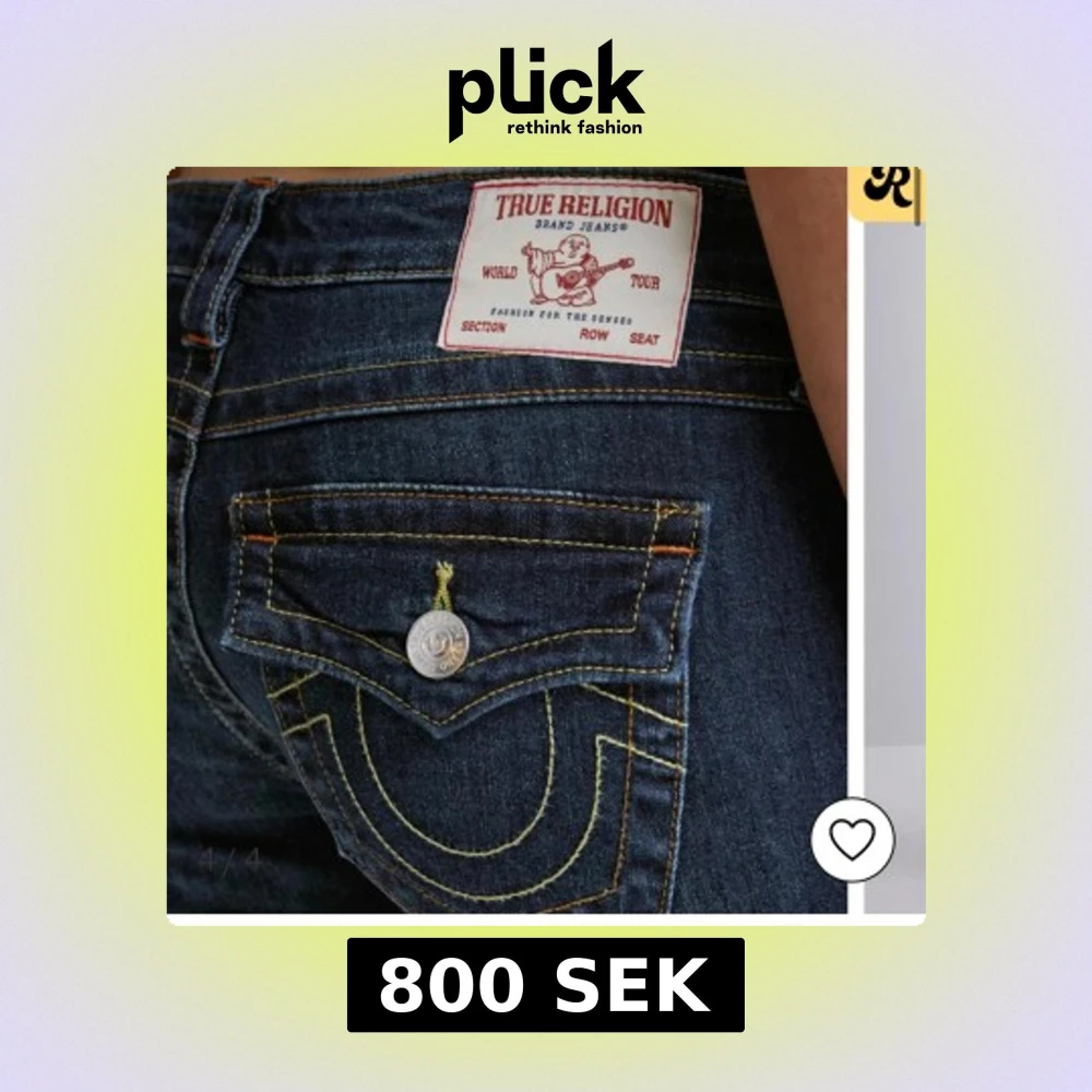 Mörkblå jeans från True Religion med ikoniska kontrastsömmar och stora ficklock bak med silverfärgade knappar. Klassisk bootcut-modell med låg midja och snygg passform. Jeansen är tillverkade i denim och har tydliga detaljer som sticker ut.