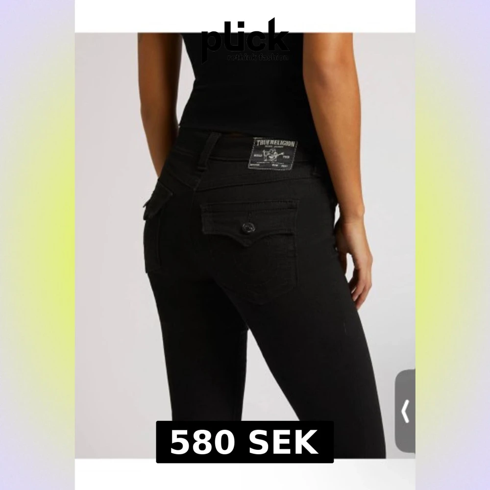 Snygga svarta jeans från True Religion med bootcut passform och hög midja. Jeansen har klassiska fickor med lock och knapp bak, samt en tydlig logopatch på linningen. Materialet är stretchigt jeans och ger en tight men bekväm känsla.