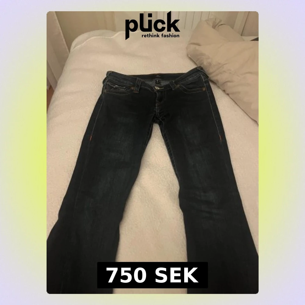 Mörkblå true religion joey Low Rise Flare jeans. Sitter fint på. Storlek 25. Lite slitna längst ner på jeans men inget som syns.