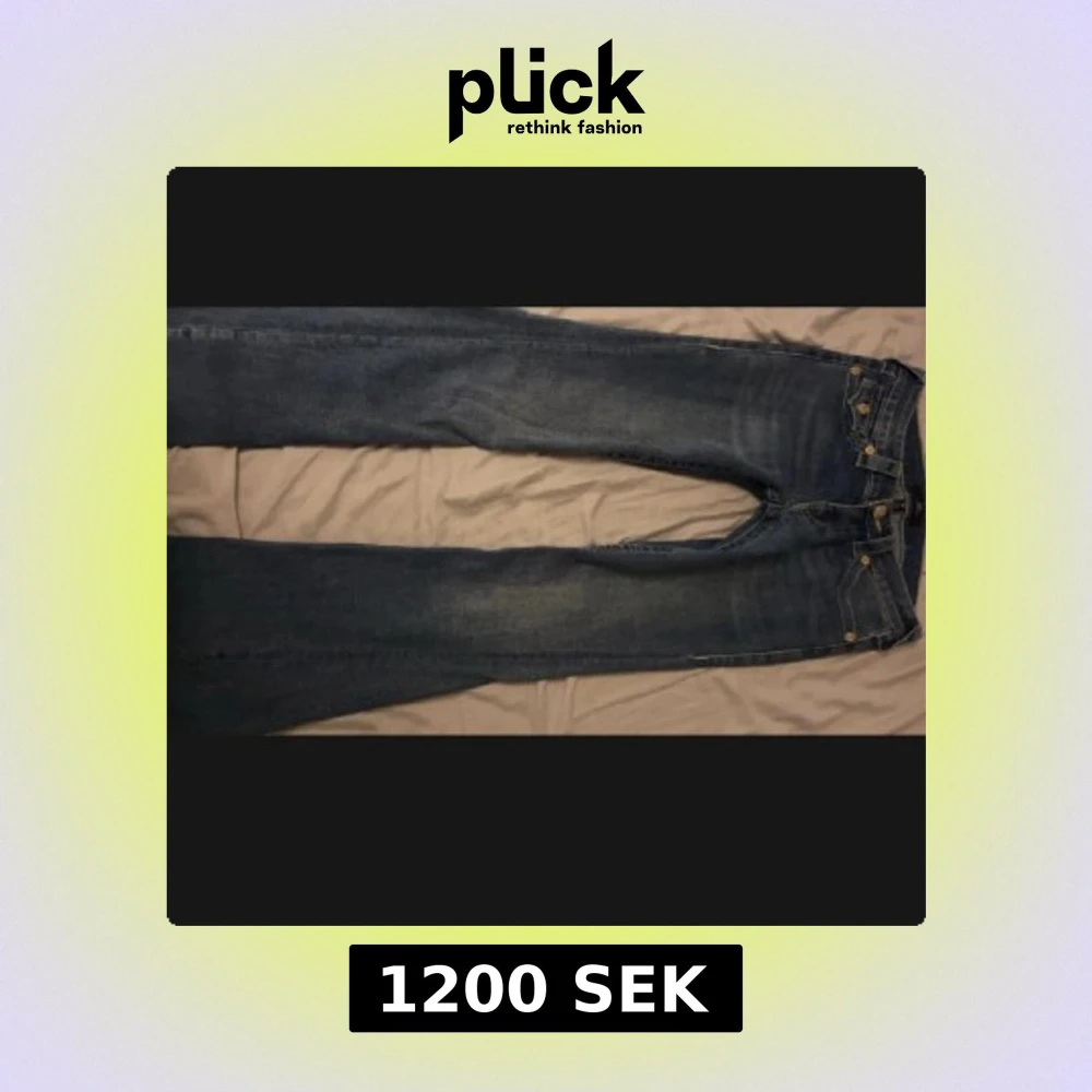 Snygga blå Joey Low Rise Flare jeans från True Religion. De har en låg midja och en utsvängd stil med dekorativa fickor bak. Perfekta för en avslappnad look med en touch av stil. Storlek W25