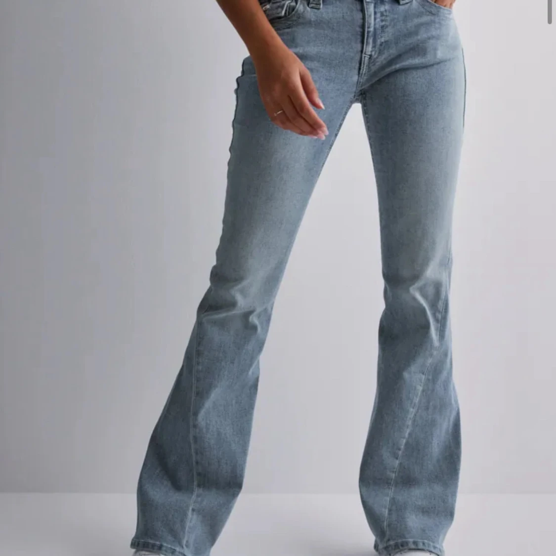 Snygga ljusblå bootcut jeans med klassiska fickor bak och fram, samt dekorativa sömmar och knappdetaljer på bakfickorna. Jeansen har låg midja och är tillverkade i mjukt denim-material som ger en skön passform och cool siluett.