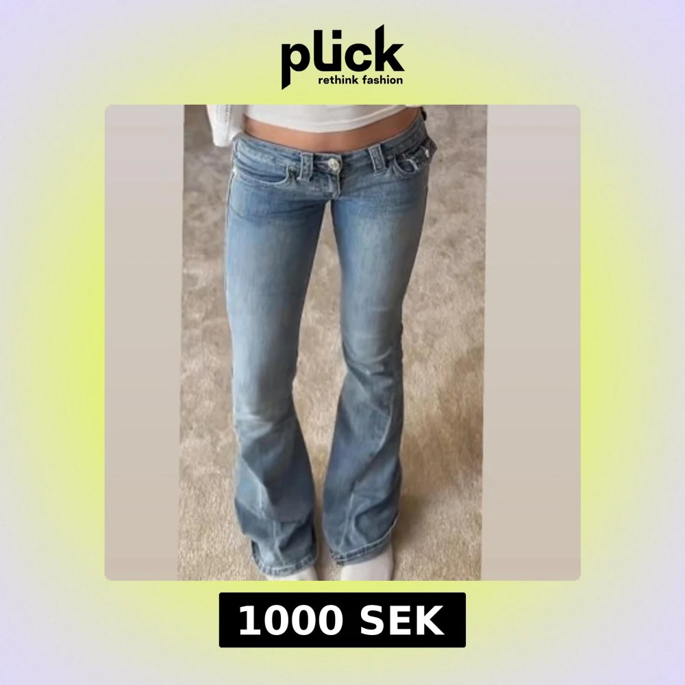 Säljer ett par ljusblå bootcut jeans från True Religion med låg midja och klassiska fickdetaljer i storlek w26. Midjemått: 38 cm tvärs över, innerbenslängd: 85 cm.