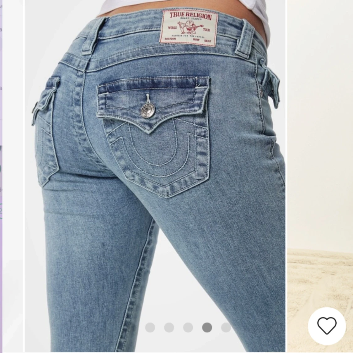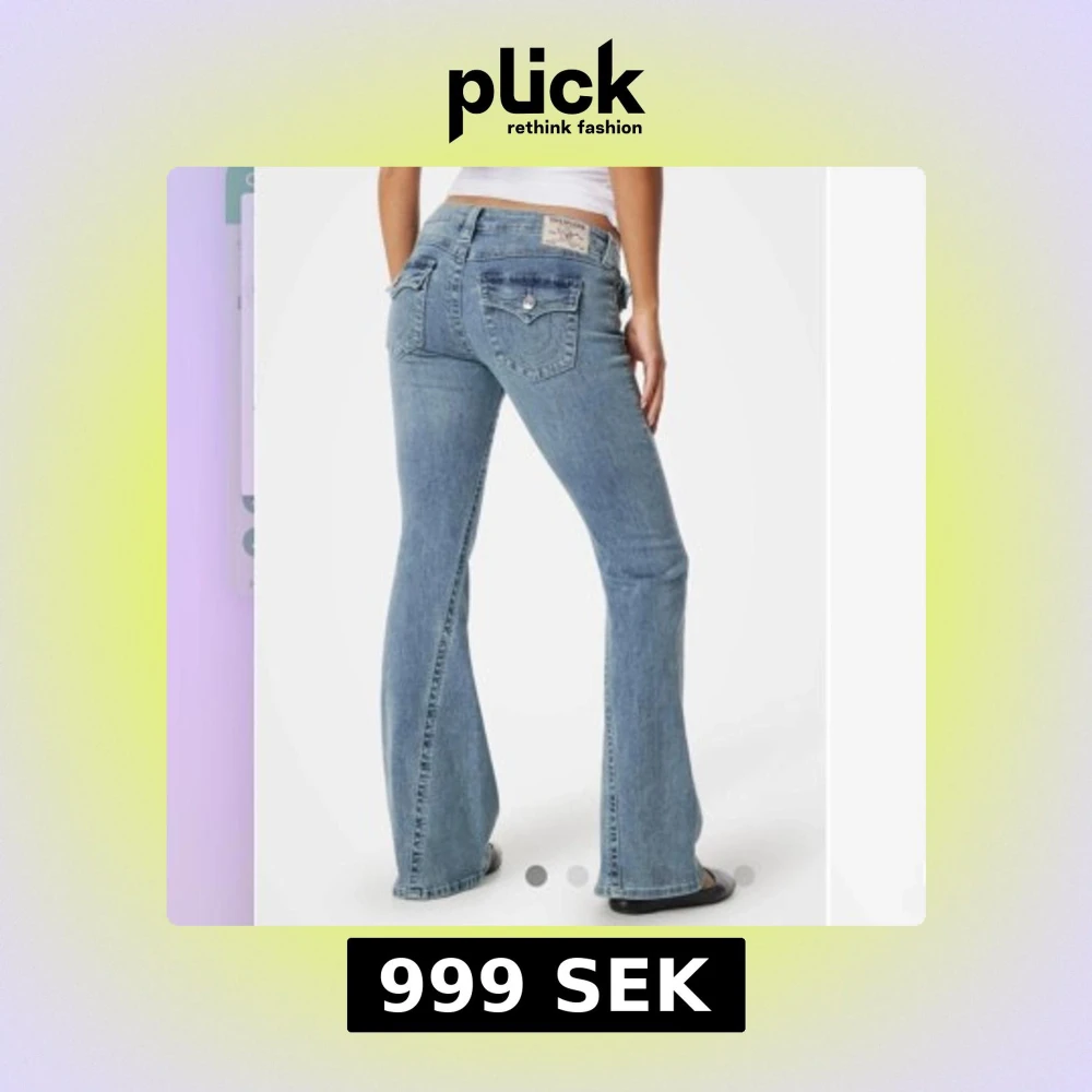 Snygga blå bootcut jeans från True Religion i modellen joey. Skit snygga på men tyvärr kommer de inte till så mycket användning. De är i storlek W27. Knappt använda