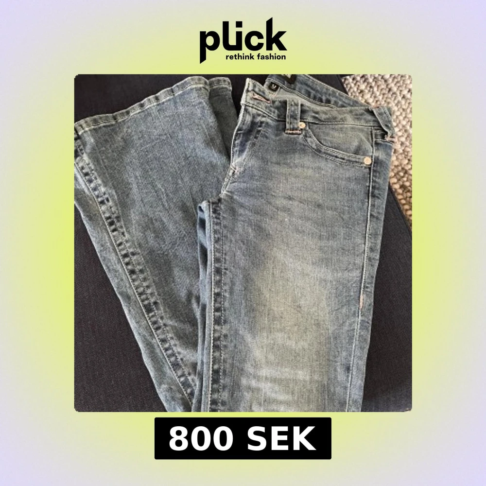Säljer ett par snygga blå jeans från True Religion. De har en klassisk femficksdesign och ikonisk brodering på bakfickorna. Perfekta för en avslappnad stil.