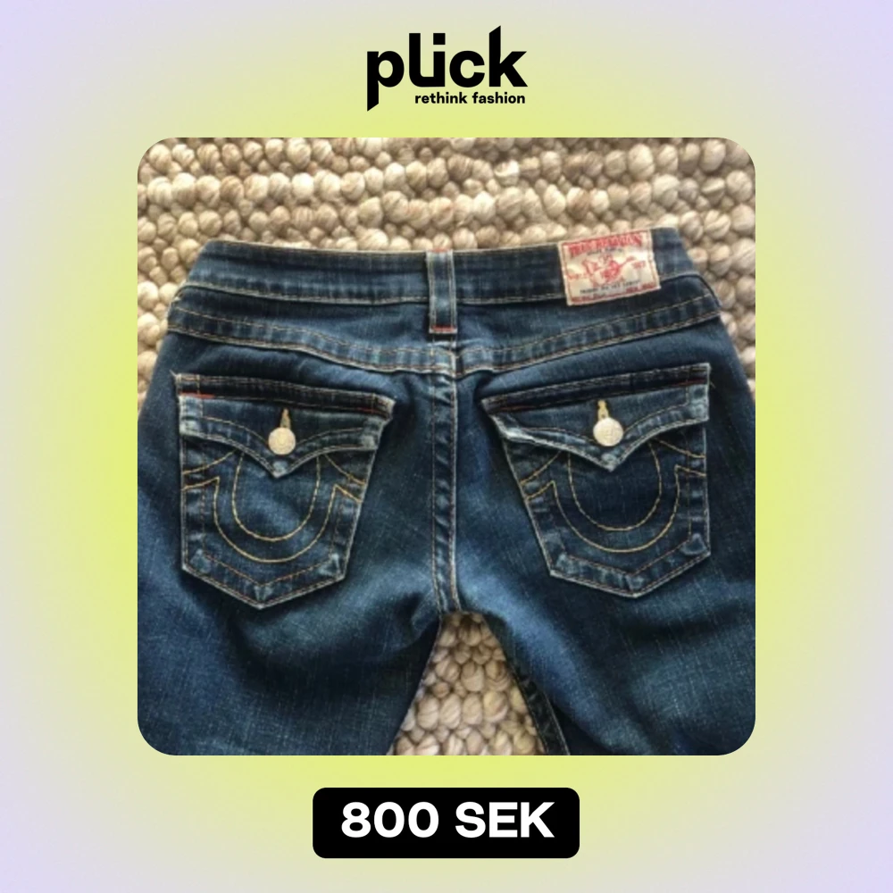 Super snygga true religon jeans som är bootcut och lågmidjade. De är i storlek w27/S. Jätte bra skick, inga defekter. De är omsydda vid benen så att de ska bli mer bootcut, men syns knappt då de är samma färg. Skriv vid frågor eller fler bilder💞