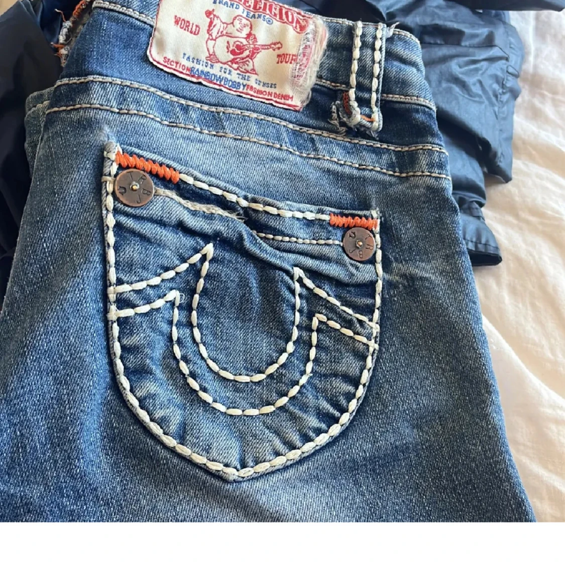 För små därav säljer jag, dem har några difekter som man kan se på bilderna Midjemått rakt över:34cm Innerbenslängd:78cm