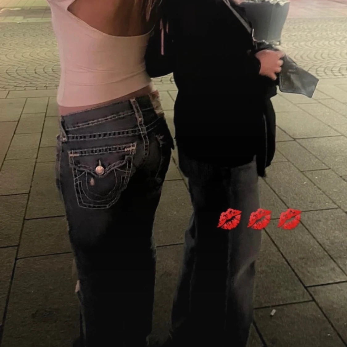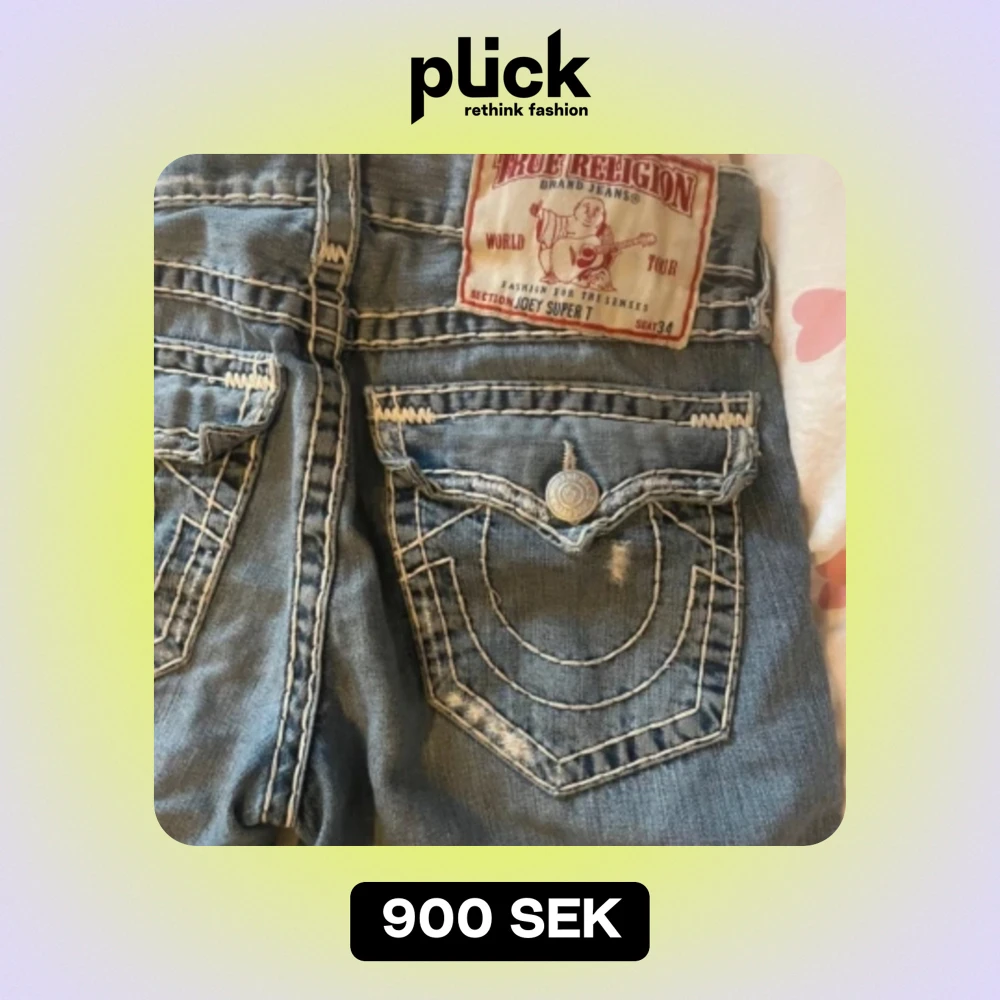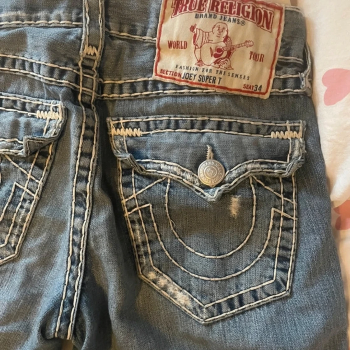 Säljer mina Trueys då dem har blivit alldeles för stora för mig. Lappen innuti står storlek 31 men passade mig utmärkt när jag hade storlek 28. Midjemått - 45cm och innerbenslängd 82cm Äkta och köpt på Seams Vintage för 1500kr🤞🏻 #truereligon #y