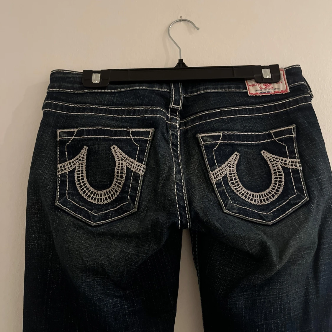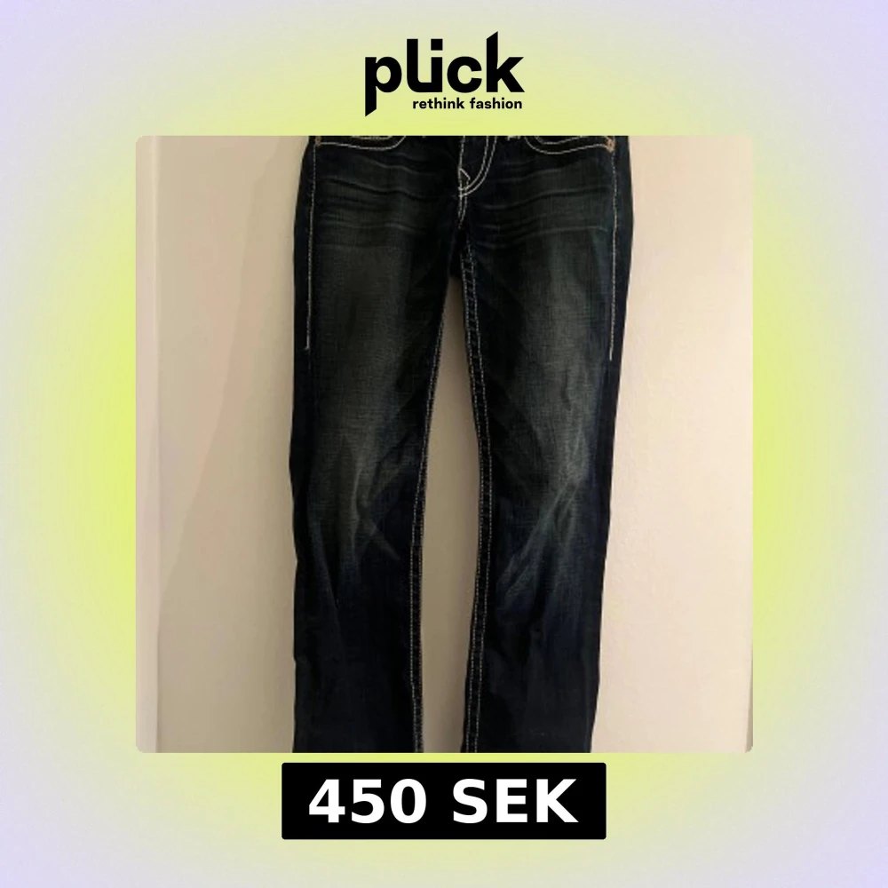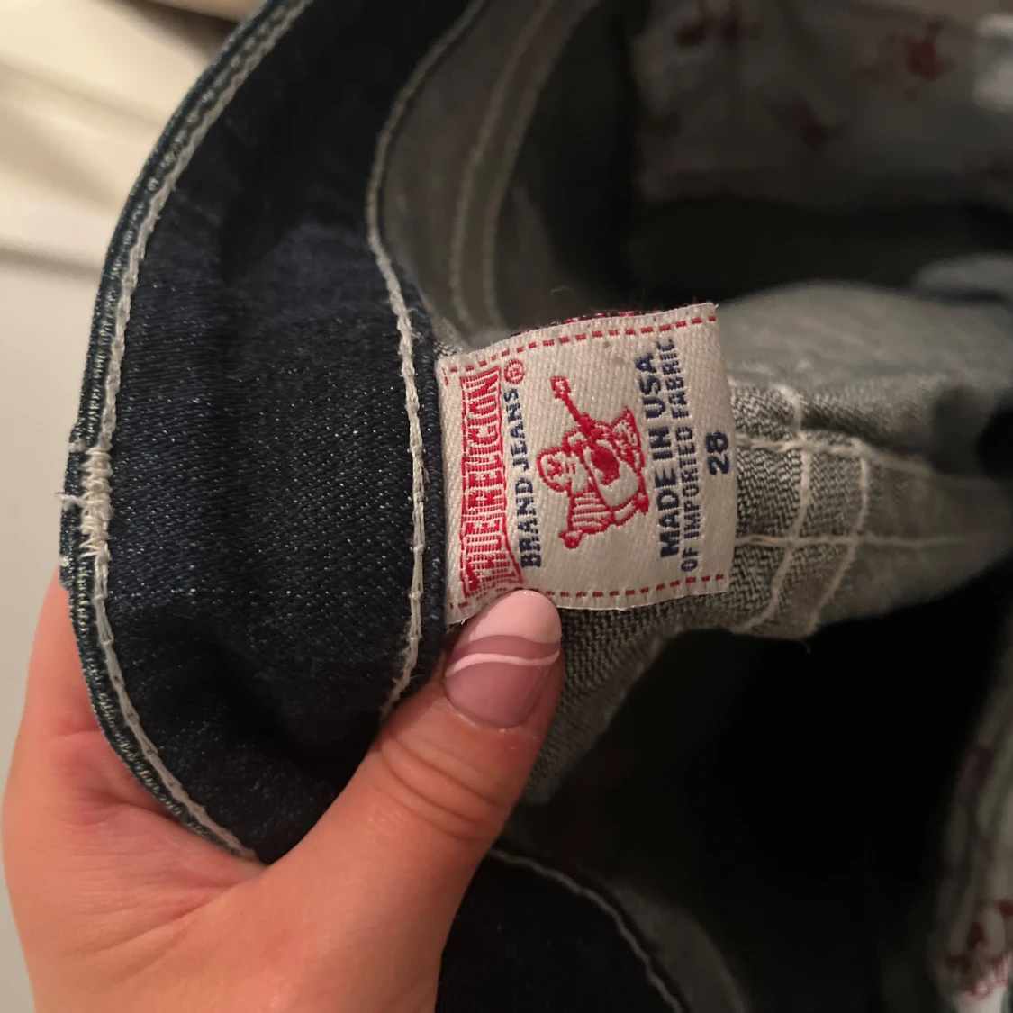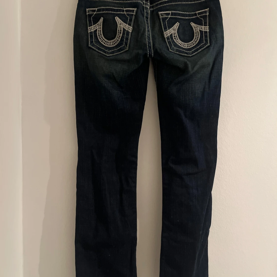 Säljer nu ett par lågmidjade mörkblåa true region Jeans😇 de är straight modell😁