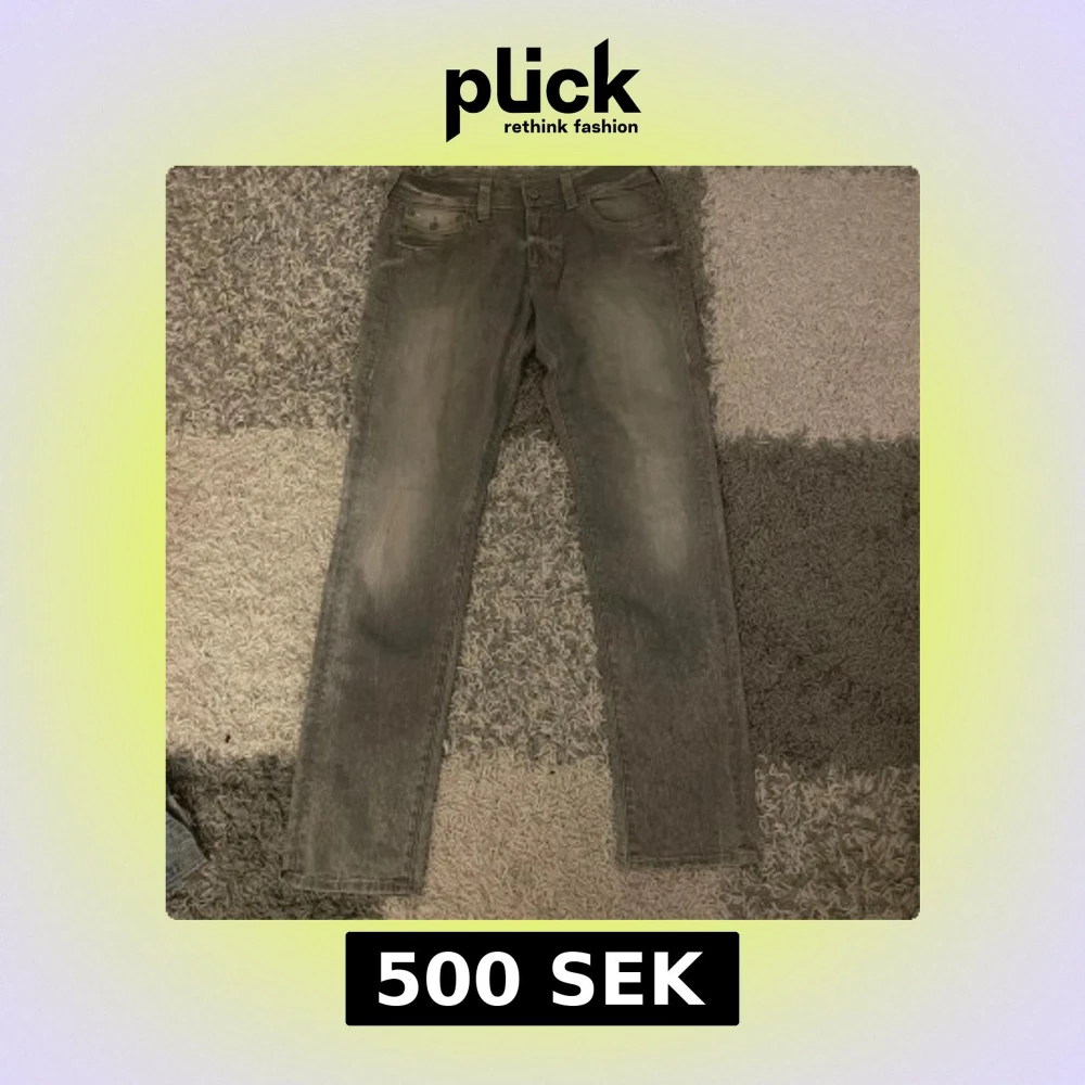 Gråa vintage true religion jeans! Mått: Midja 42cm Längd 110cm Bredd 26cm Benöppning 19cm