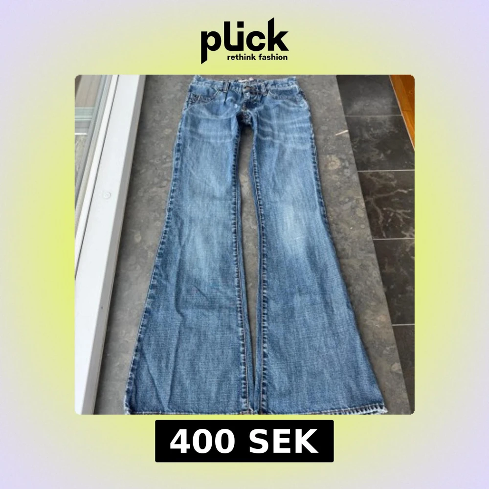 Super snygga jeans! Midjemått tvärsöver är 37cm, midjehöjden är 17cm, inerbens längden är 84cm💕jeans har några små hål fram, se bilderna men de är enkla atta lagga tror jag och dessutom inget som syns. Hållen verkar inte bli större 💕