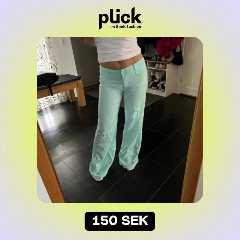 Säljer ett par jättesöta turkosa lågmidjade linnebyxor från Vila med broderier runt midjan. Finns inga defekter. Storlek M men sitter jättebra på mig som brukar ha S. Hör av er för fler bilder! ❤️🔥