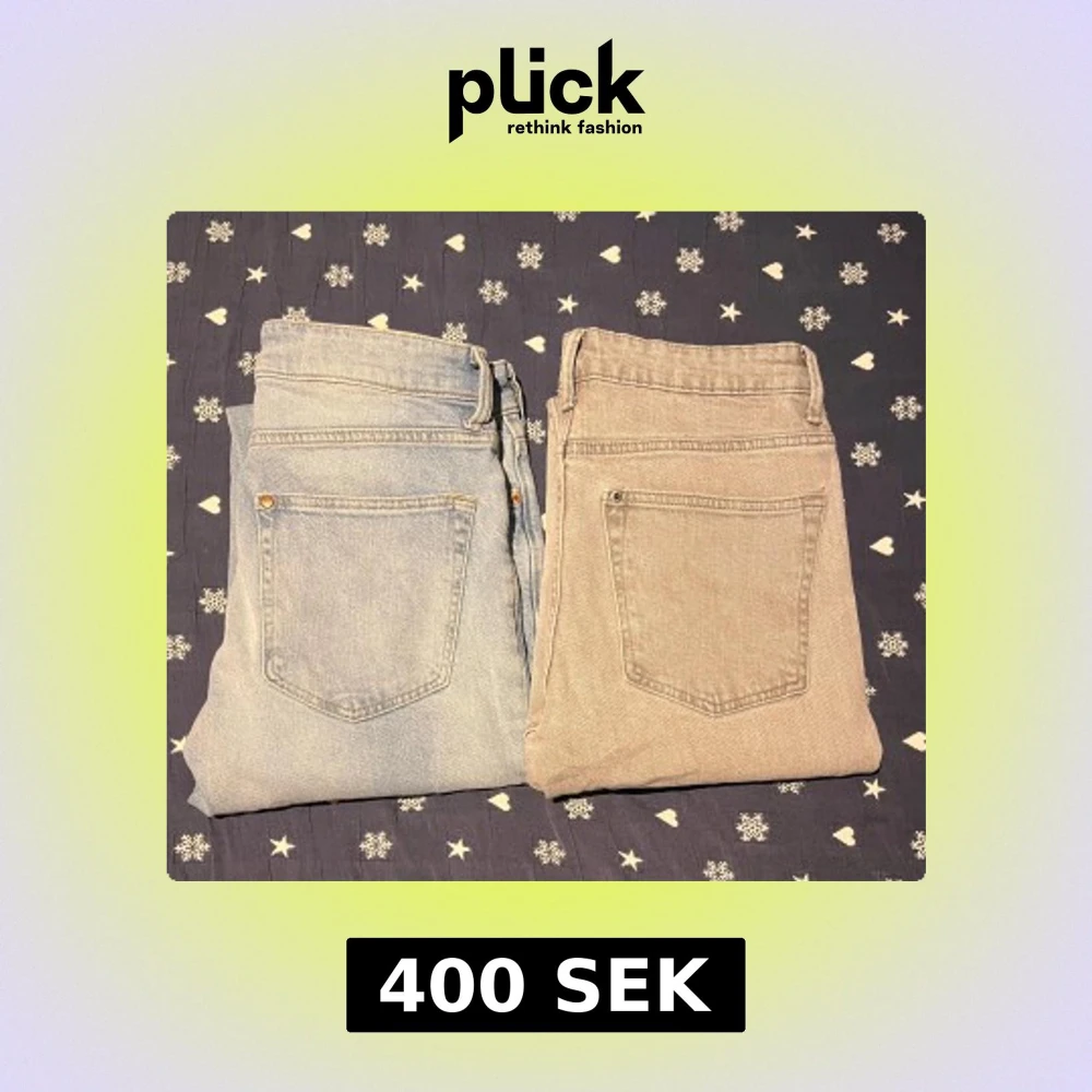 Säljer två par Regular Tapered jeans från H&M i storlek 29/32. Ena paret är ljusblått och det andra är ljusgrått. Båda har klassisk femficksdesign, raka ben med avsmalnande passform och är tillverkade i mjukt bomullsjeansmaterial. Perfekt för dig som gillar enkel och clean stil. 400 kr för två par jeans!!!!🔥