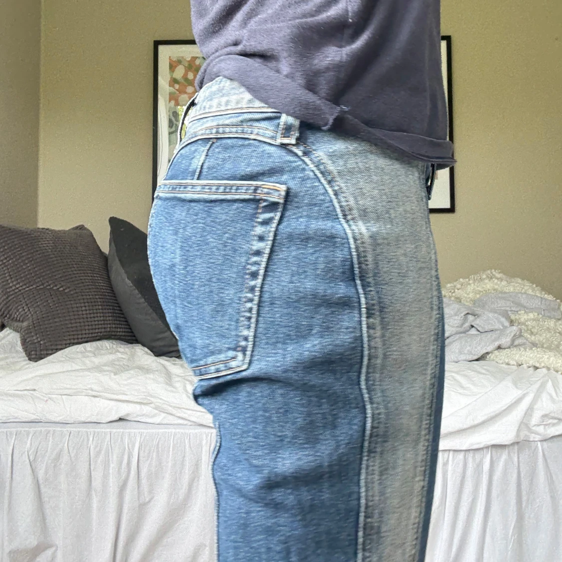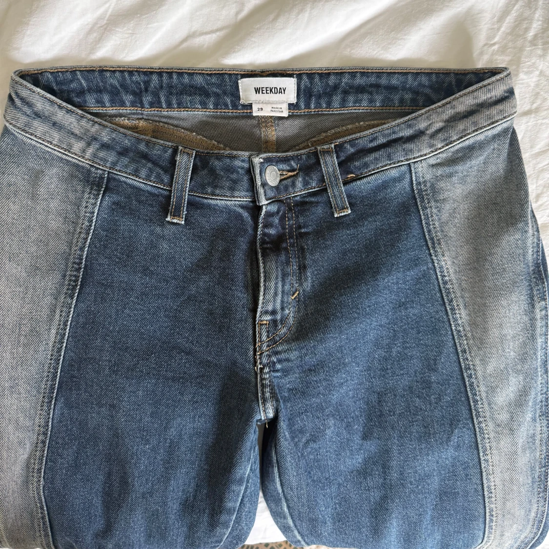 Så snygga o unika jeans från weekday! Rätt slitna där nere så därav priset!💞 Jag är 165 o har s o de sitter perfekt! De är storlek 29