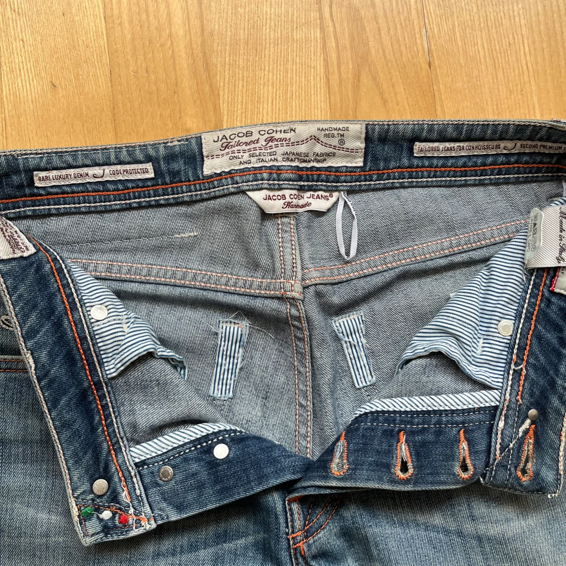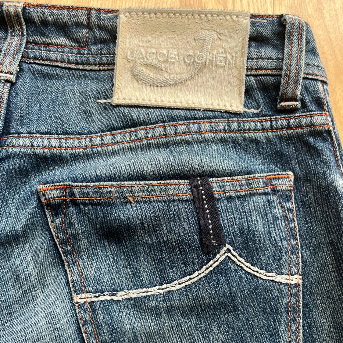 Väldigt snygga jacob cohen jeans med en stilren passform! Fin tvätt och unika deltaljer som gör din outfit perfekt🙌hör av dig om funderingar!