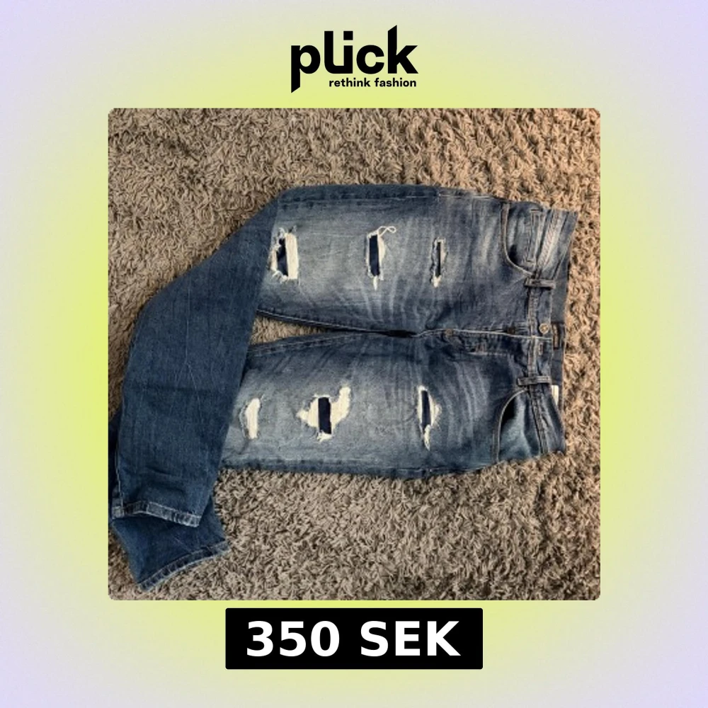 Säljer ett par blå jeans från Andy World, modell WATERS Carrot Stretch. Jeansen har flera slitningar och hål framtill för en riktigt edgy look. Klassisk femficksmodell med normal passform och dragkedja. Perfekta för dig som gillar streetstyle.