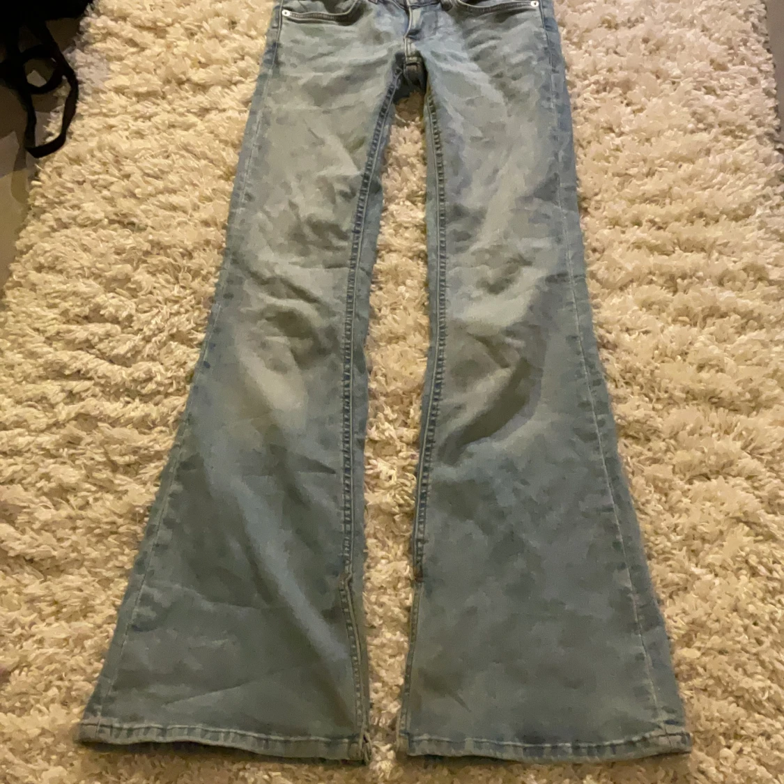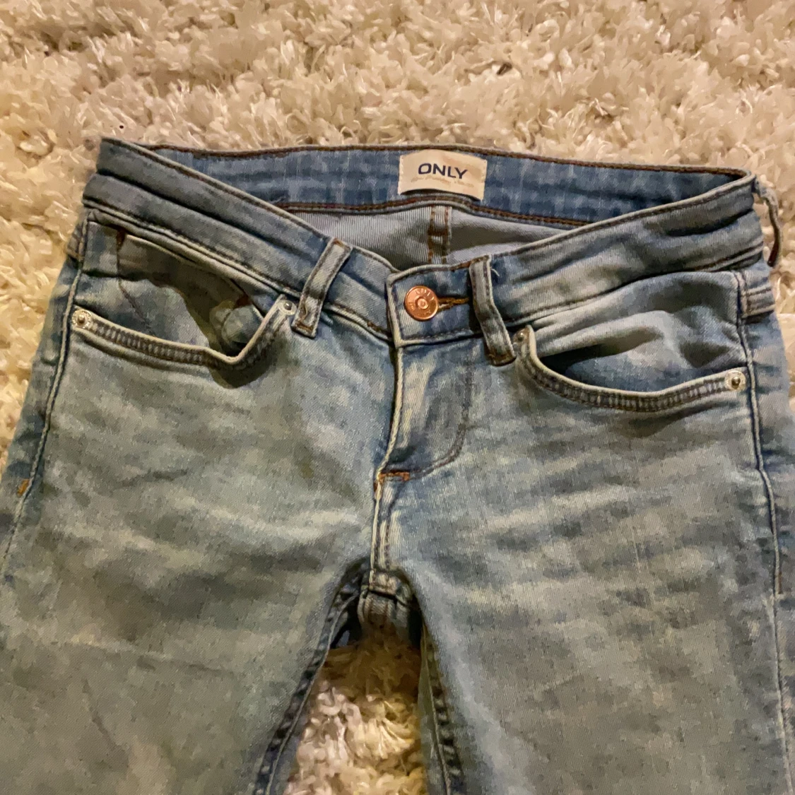 Säljer ett par sjukt snygga jeans från Only i ljusblå denim. Byxorna har låg midja, klassiska fem fickor och dragkedja med knapp. Perfekt passform med lite utsvängda ben och cool tvättad look. Säljer eftersom de inte kommer till användning längre. Stretchiga.💞Strl 25/32