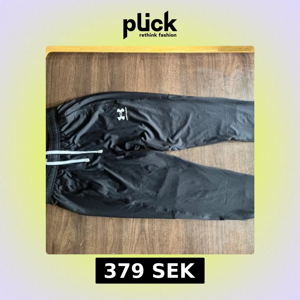 Svarta mjukisbyxor från Under Armour med elastisk midja och vita dragsnören. Byxorna har en slim passform och är tillverkade i ett mjukt, syntetiskt material som passar perfekt för träning. Klassisk logga på låret och smala benavslut. Kom med rimliga bud priset är inte fast✌️🙏
