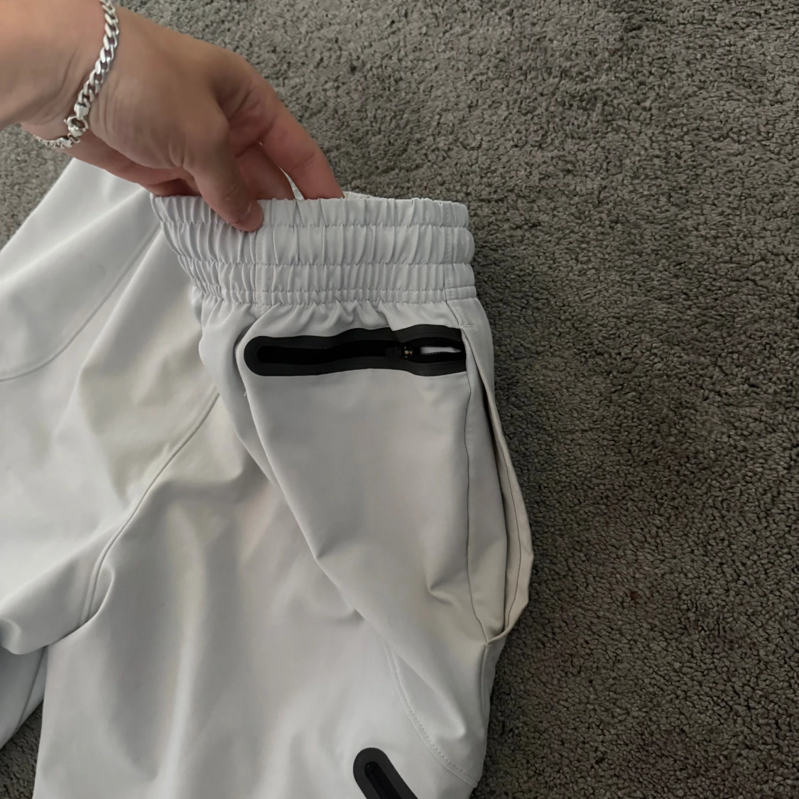 Snygga grå/vit byxor vet inte hur jag beskriva färgen, i storlek S, kolla sista bild för hur byxorna ser ut på dig