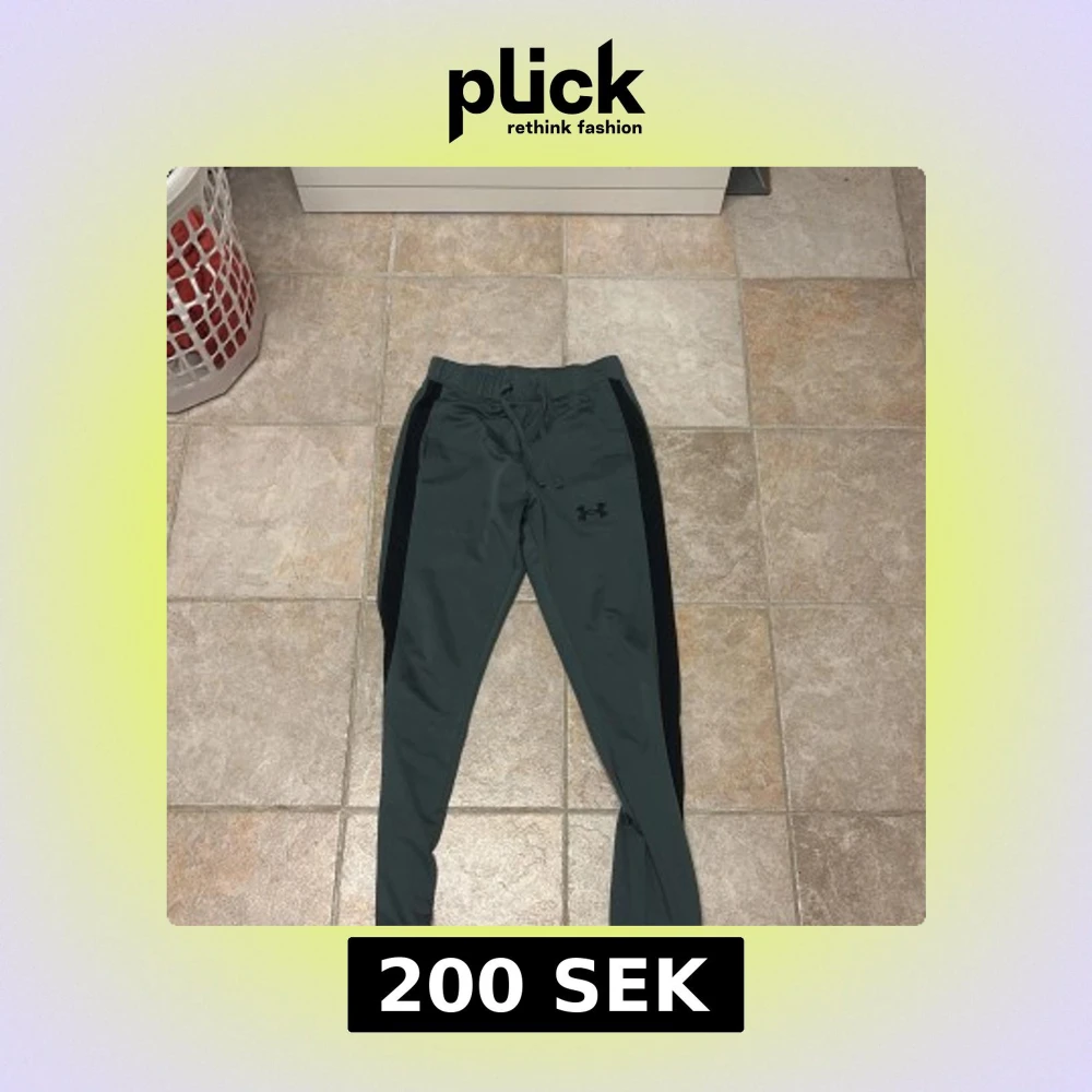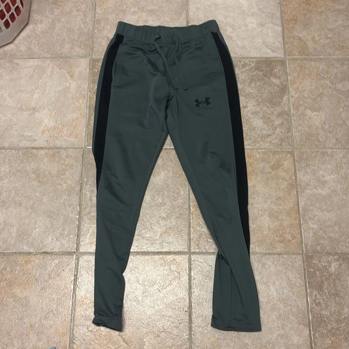 Snygga träningsbyxor från Under Armour i mörkgrått med svarta sidopaneler. Byxorna har snörning i midjan och smal passform. Perfekta för gymmet eller löprundan, med sportig look och bekvämt material.