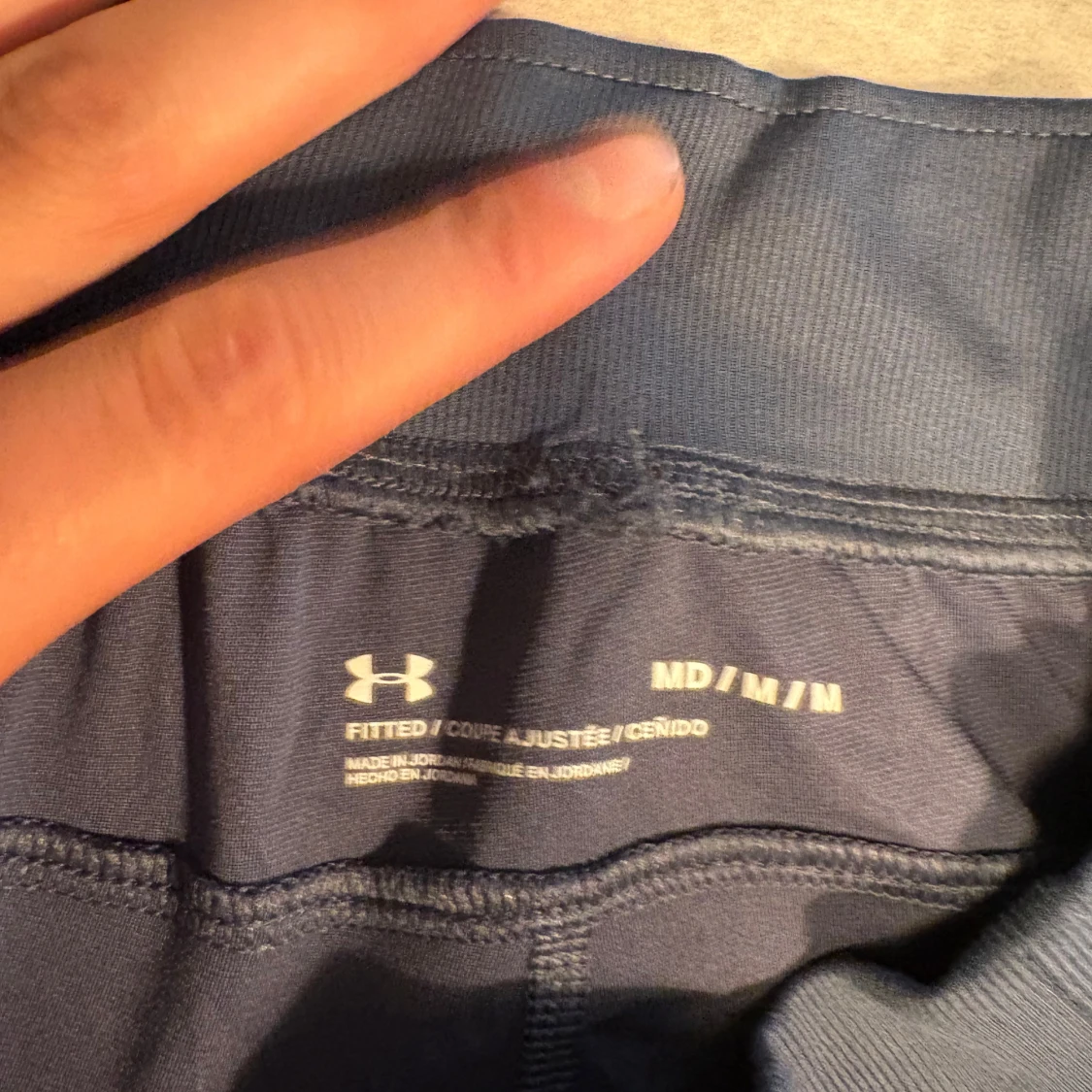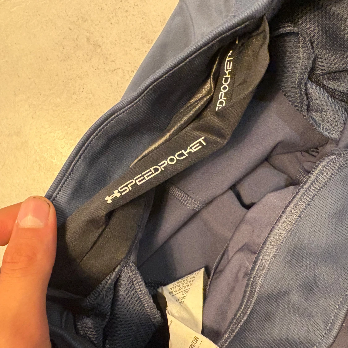 Säljer ett par mörkgrå Under Armour SpeedPocket träningsbyxor i storlek M. Byxorna har slim passform, elastisk midja och är gjorda i syntetmaterial som andas. Perfekta för löpning eller gym, med praktisk ficka för mobilen. Snyggt logotryck på benet.