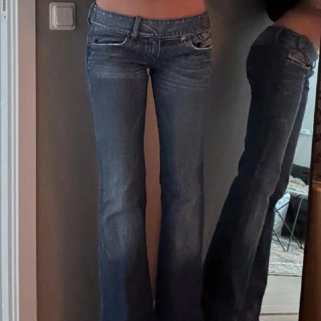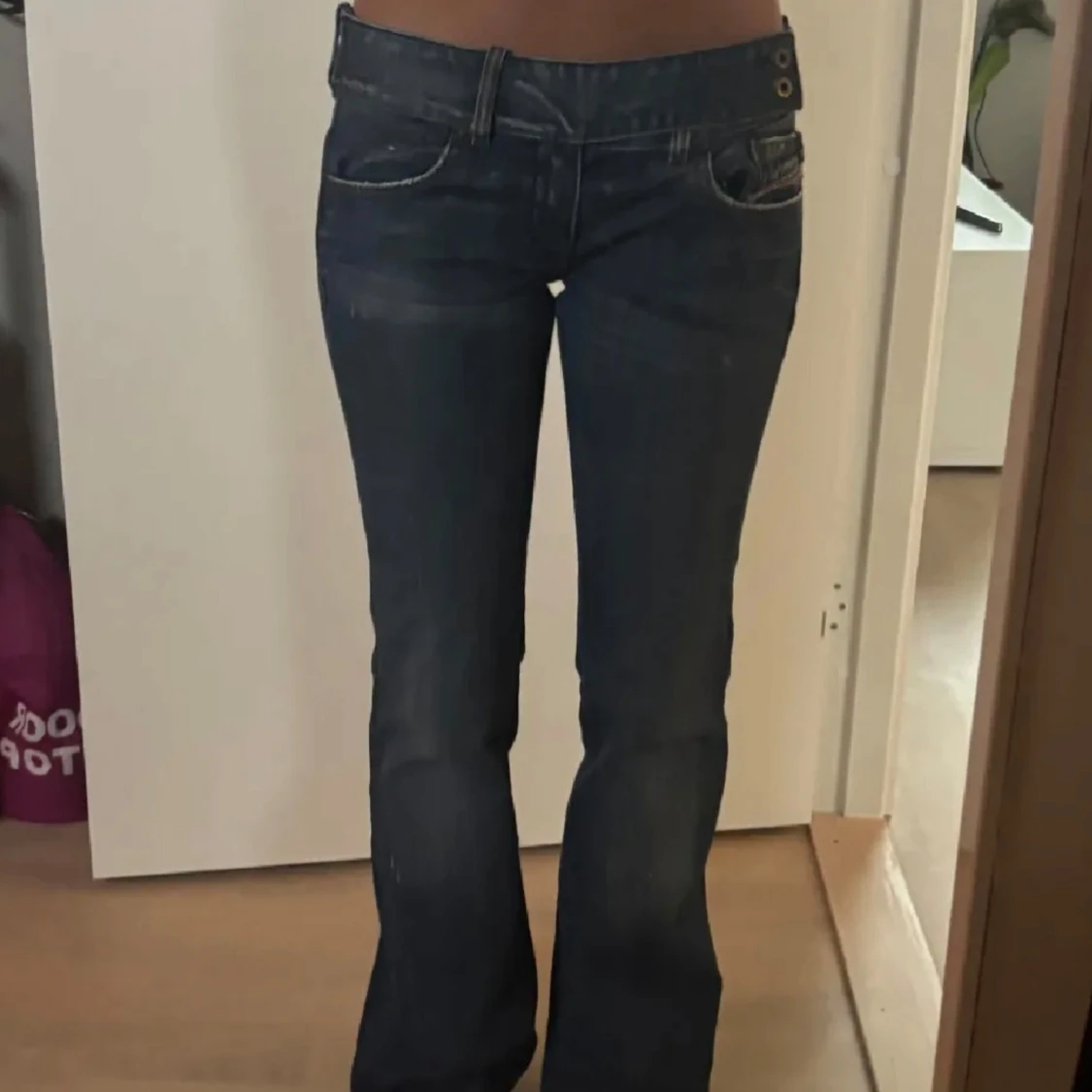 Så snygga diesel bootcut jeans lågmidjade! Så snygga lite slitningar längs ned. Midjemått:37 cm och innerbenslängden:82cm, kontakta vid frågor!❤️lite nedtrampade längs ned