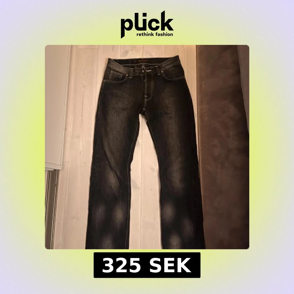 Snygga svarta jeans från Nudie Jeans Co med klassisk femficksdesign och kontrastsömmar. Jeansen har raka ben och är tillverkade i slitstarkt bomullsdenim. Perfekta för dig som gillar en stilren och tidlös look. Dessa är mycket unika och sällsynta. Till ett mycket bra pris !!
