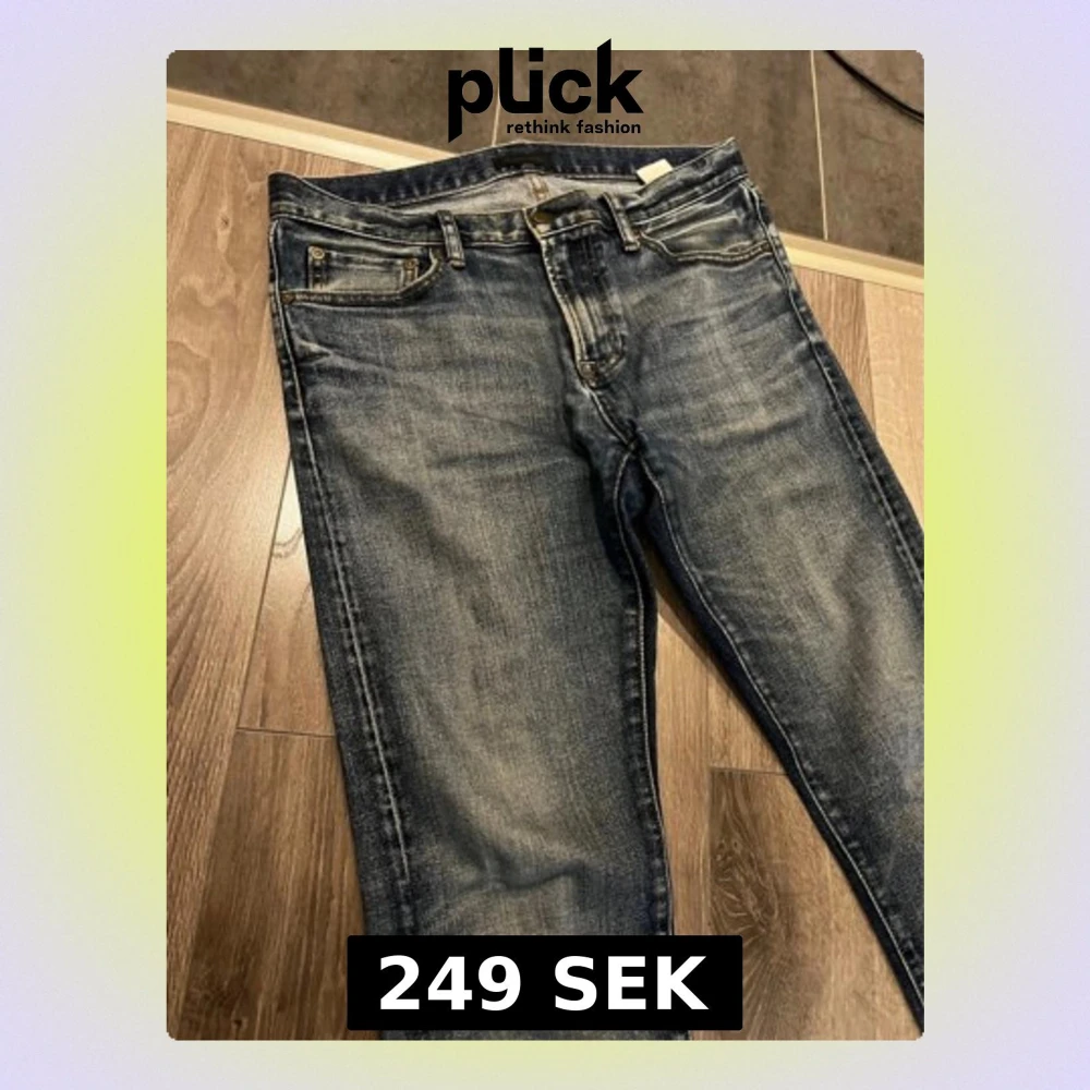 Säljer dessa riktigt fina uniqlo jeans i utmärkt skick och riktigt snygg färg/stil. Passar perfekt för archive och stockholmstilen. Den är knappt använd och i storlek W32 L34. Skriv gärna vid intresse!