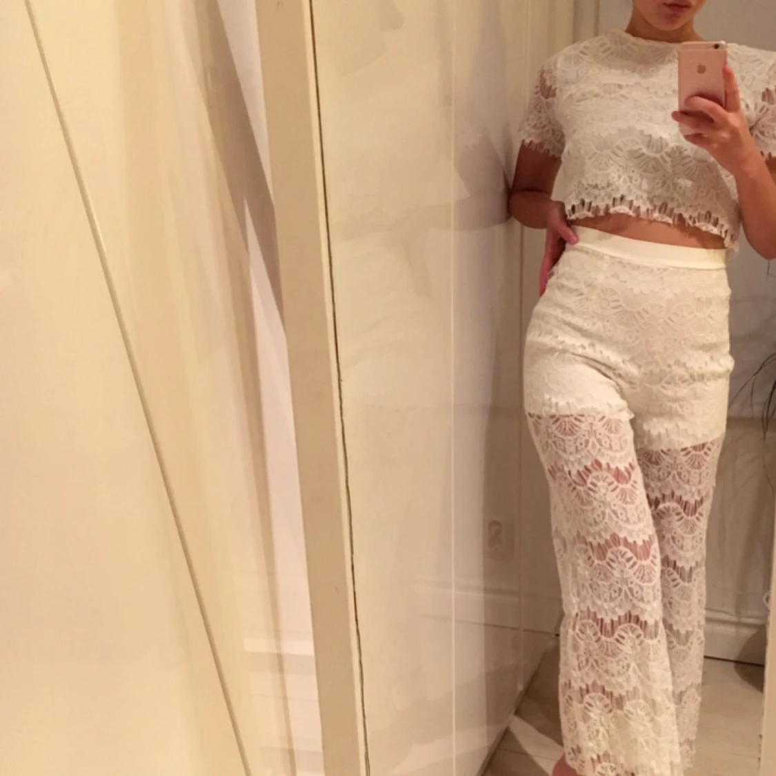 SJUKT drömmigt set med byxa och topp! Man känner sig verkligen som en dream med detta på sig :’) som ny då den är använd 1 gång för special occasion (men sen hamna detta set tyvärr bara i garderoben som mycket finkläder gör 😢) men den här känns typ perfekt som student outfit? Eller att använda till vardags separat tex ✨