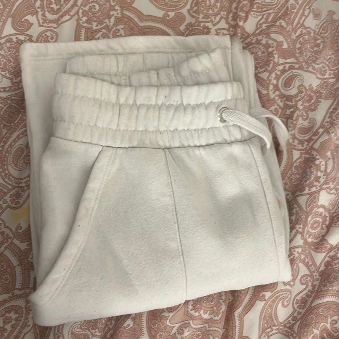 Vita utsvängda mjukisbyxor från lager157 i storlek M. Väldigt stora på mig och långa som själv har storlek S. Lite noppriga och orginalpris-200kr