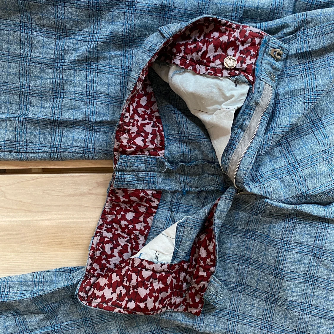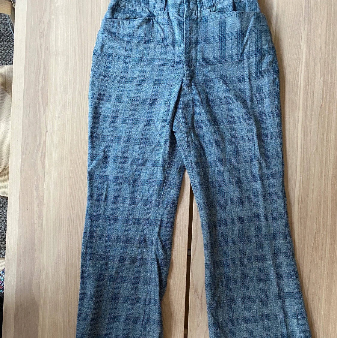 Säljer dessa som är inköpta från beyond retro. En 70-tals modell, med hög midja och lite utsvänga ben. Tror de är något ullmaterial då de är ganska varma, kanske blandning polyester/ull. Storlek står inte men skulle tippa på 36/S/ liten M✨