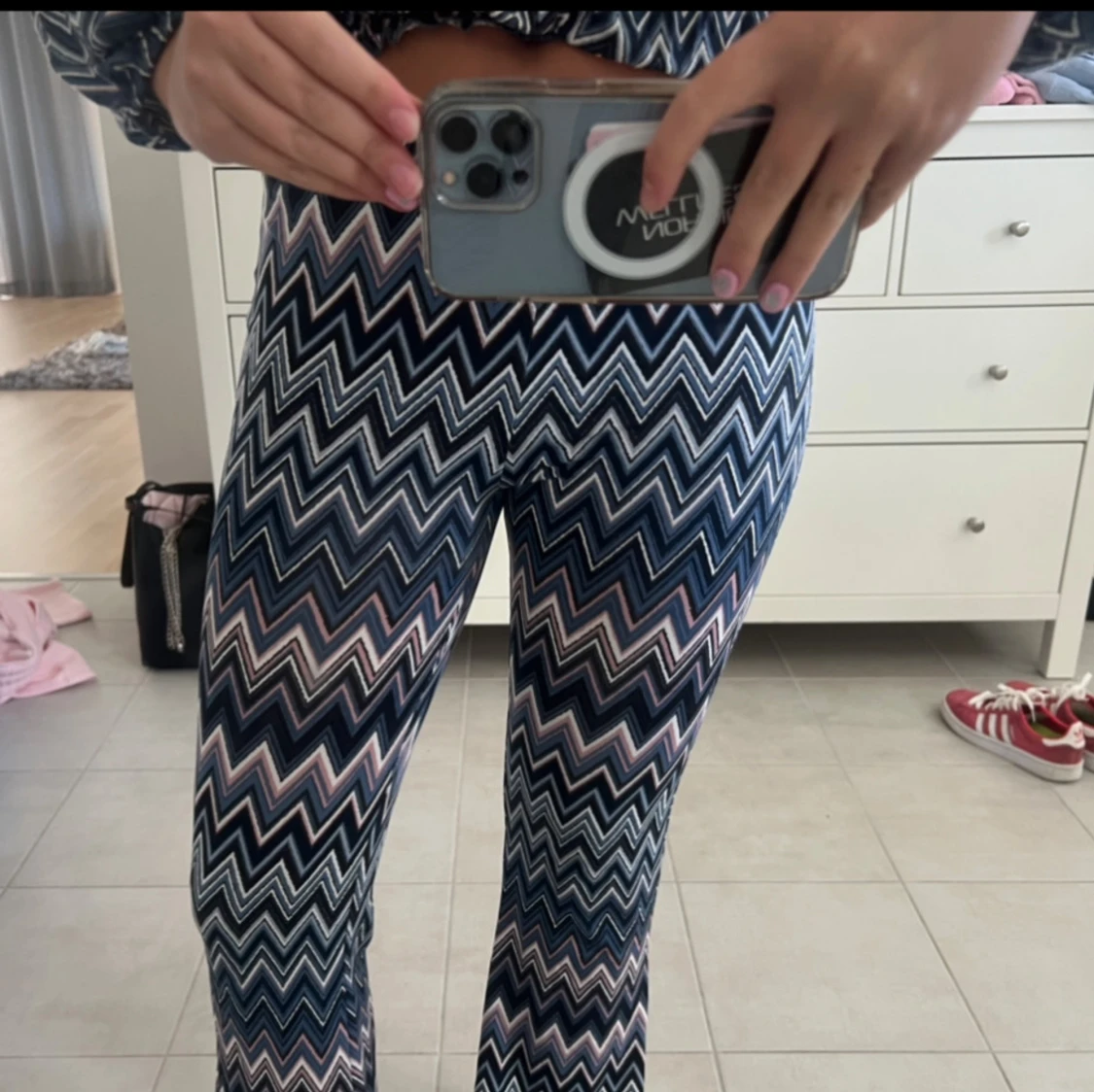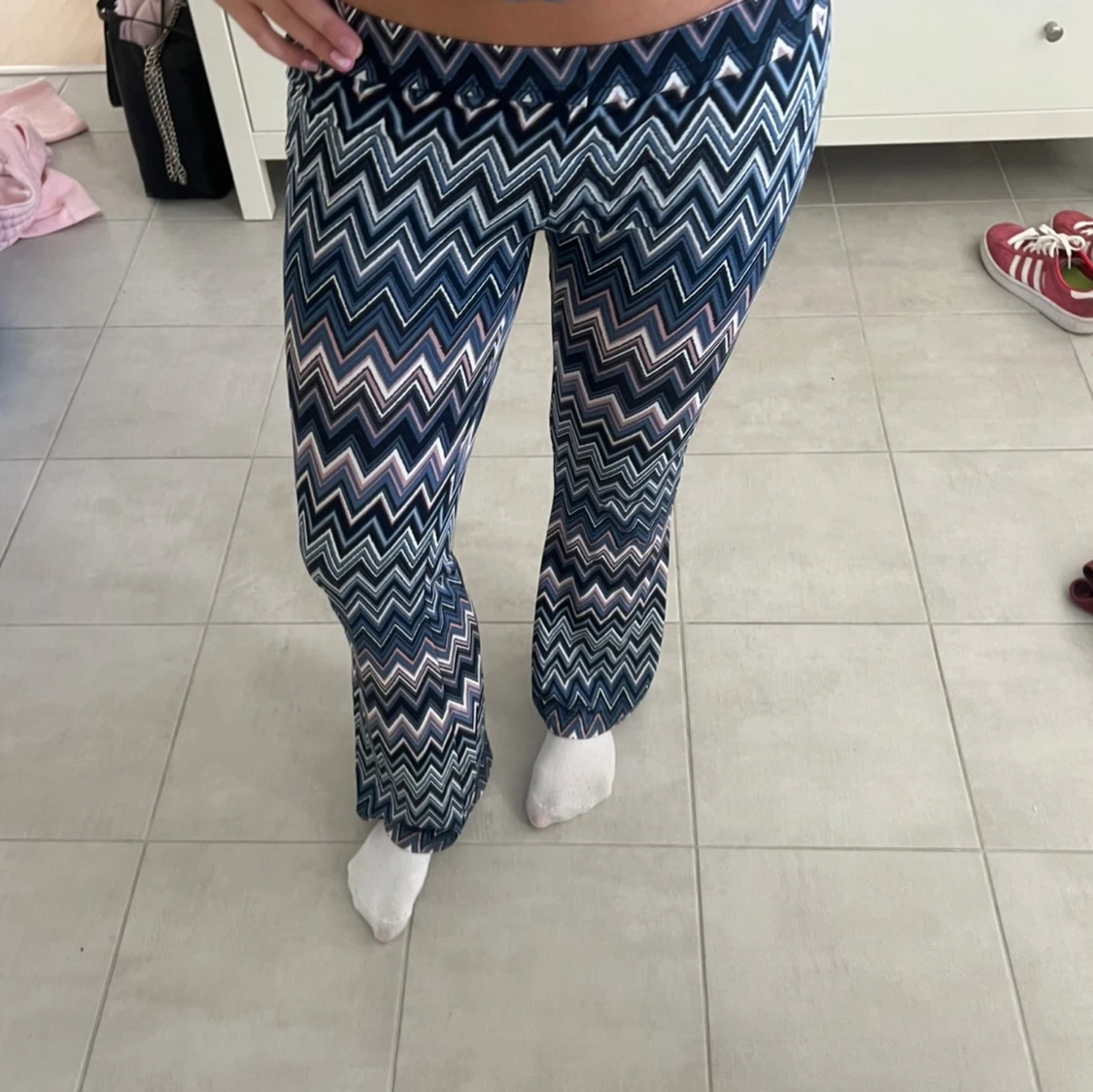 Trendiga bootcut byxor med zig zag mönster. Storlek 146/152 men passar även mig som har xs/s då de är väldigt stretchiga och ganska långa💗