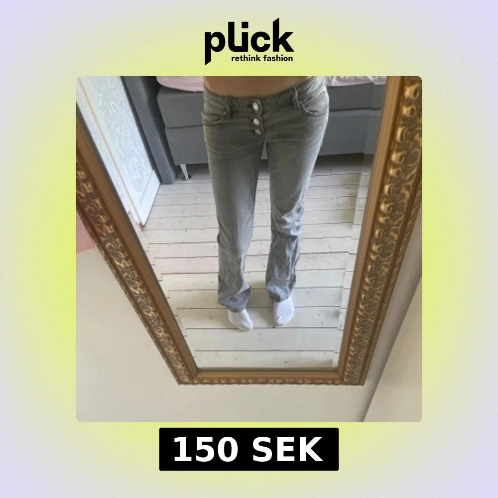 NYSKICK!! Super fina Gina Tricot jeans med 3 knappar!💓 Lite för korta för mig som är 168cm på bilderna! Stl: 146 men passar mig(lite korta) som har 158/160 i vanliga fall så antagligen är det nått ”tryckfel”😅Dom går att spänna in och ut i midjan beroende på hur stor man vill ha den