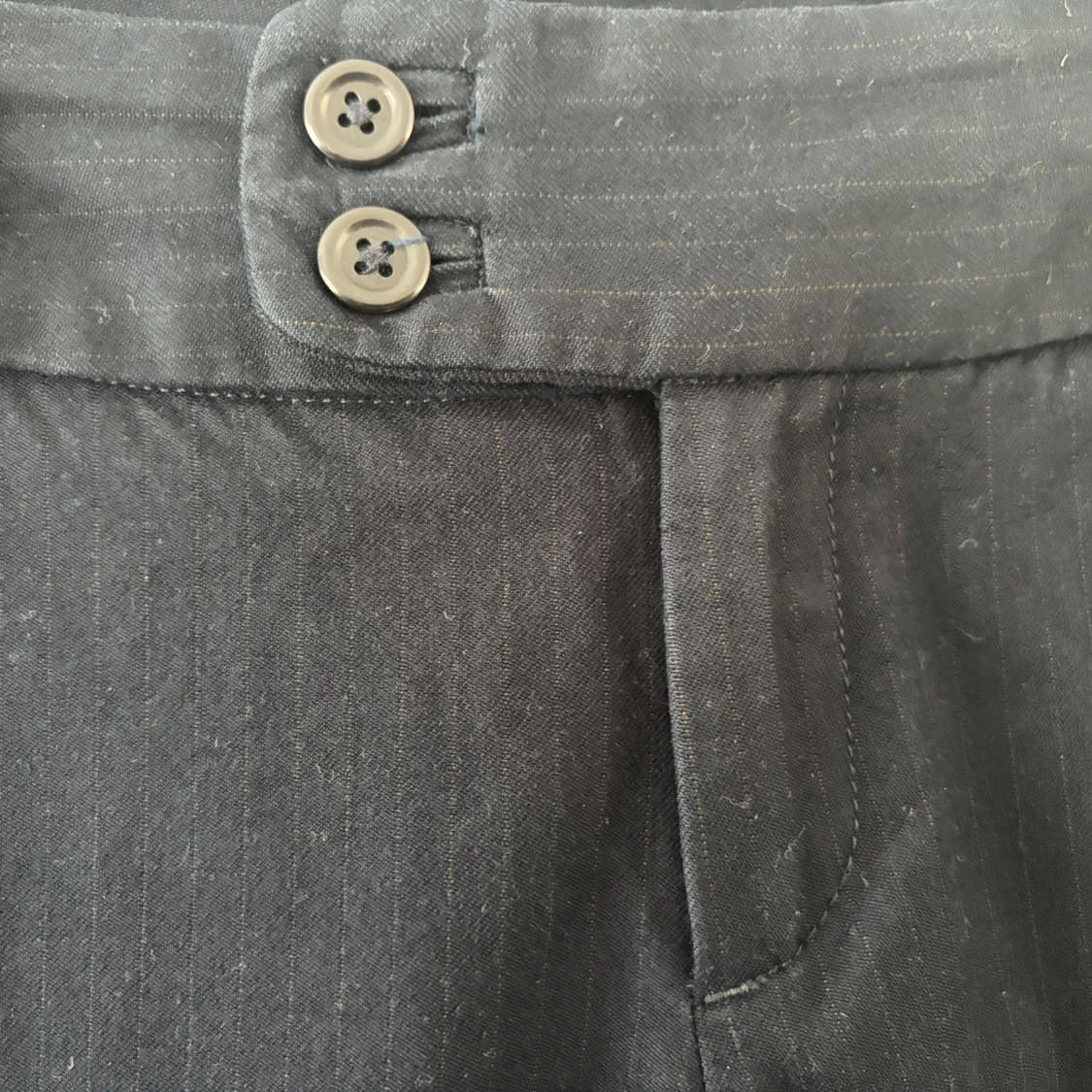 Utsvängda kostymbyxor med kritstrecksränder