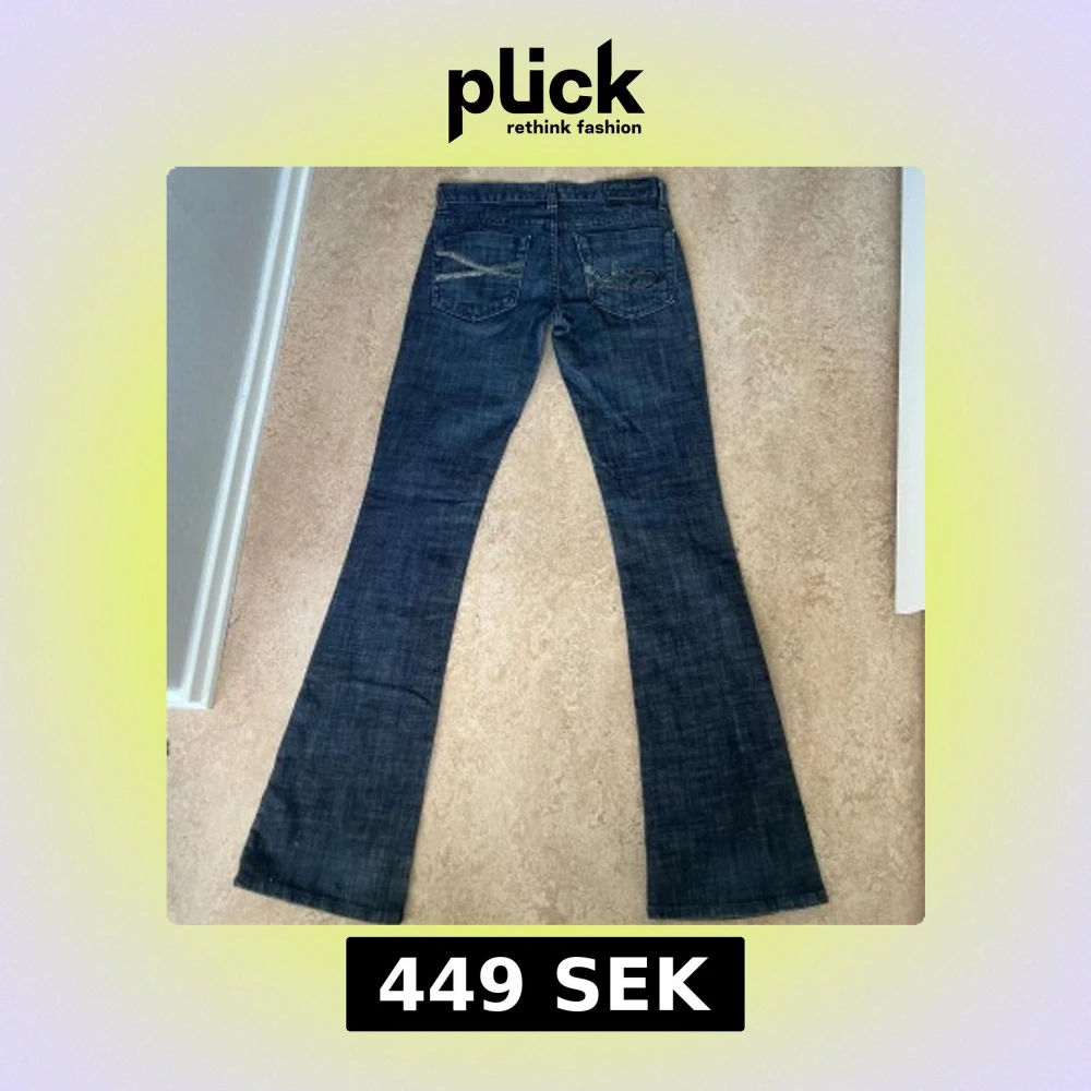Super lågmidjade bootcut jeans från 2000s bebe. Mörkblå med glitter detaljer på bakfickorna. De är i storlek 25 men skulle säga att de är lite stora i storleken. Midjemått-36cm, innerbenslängd-85cm. Skriv för fler bilder eller frågor!🩷