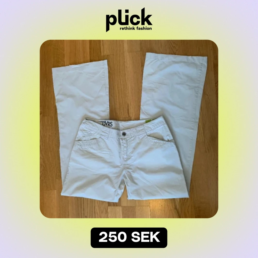 Beigea/vita lågmidjade tygbyxor i 100% bomull. Innerbenslängd: 78cm Midjemått rakt över: 40cm